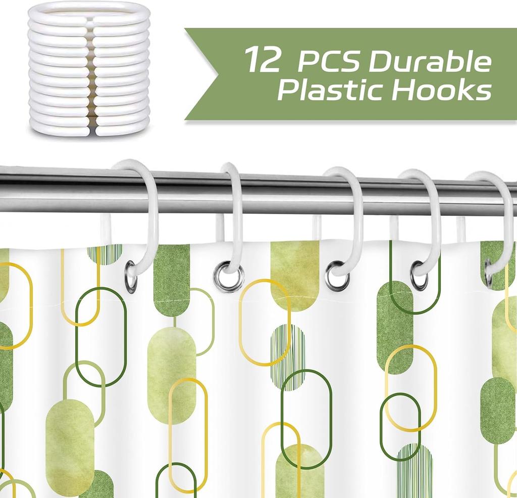 Geometric Sage Green Shower Curtain, Farmhouse Bathroom Shower Curtain Set, Art Print Bathroom Modern Decor Fabric with Hooks