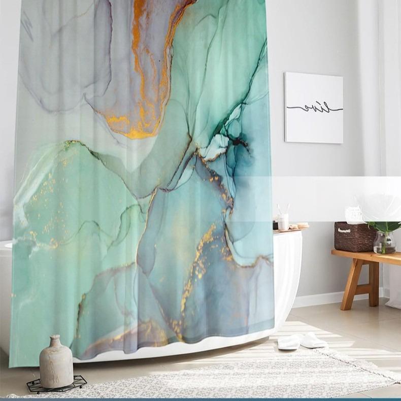 Современное искусство Мрамор Золотая фольга Набор для ванной Водонепроницаемый Защита от плесени Шторка для душа