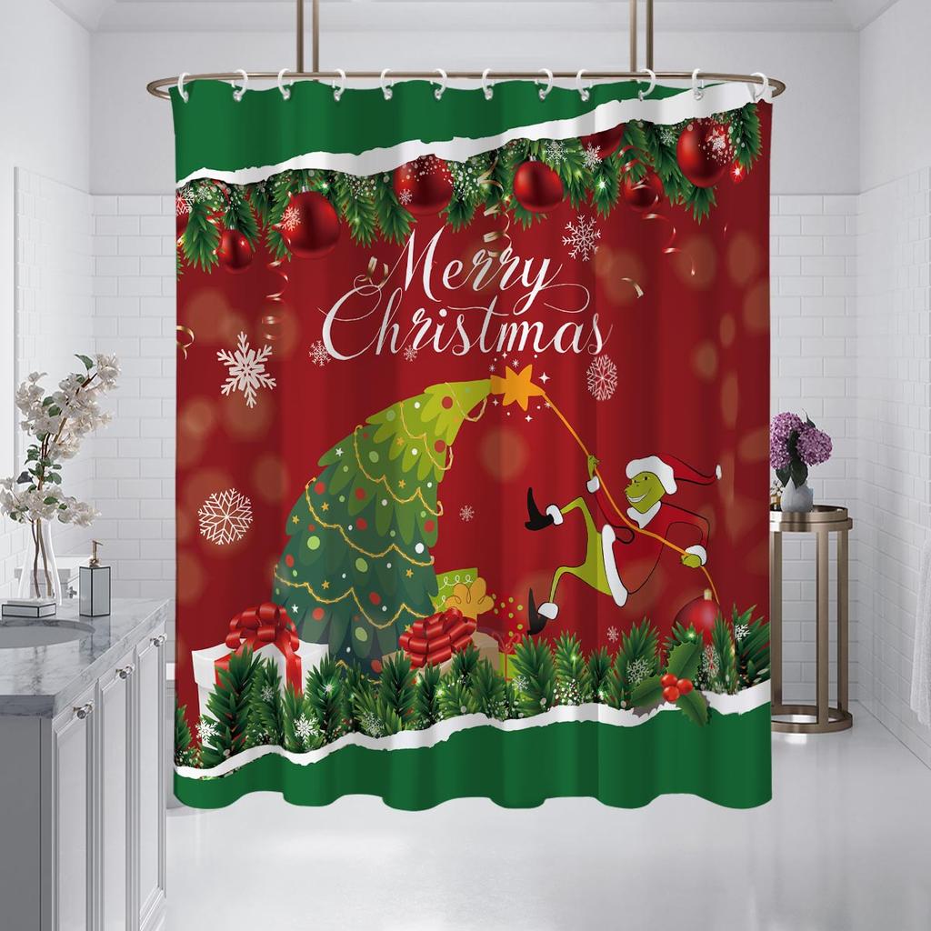 1 шт. Водонепроницаемая подвесная шторка для душа с принтом «Счастливого Рождества» и 12 крючками, разные размеры, машинная стирка