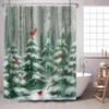 Сосна Красная Птица Занавеска для душа Зеленый Зимний Лес Кардинал Снежная Ягода Рождественская Тема, Деревенский Праздник Тканевая Занавеска для душа