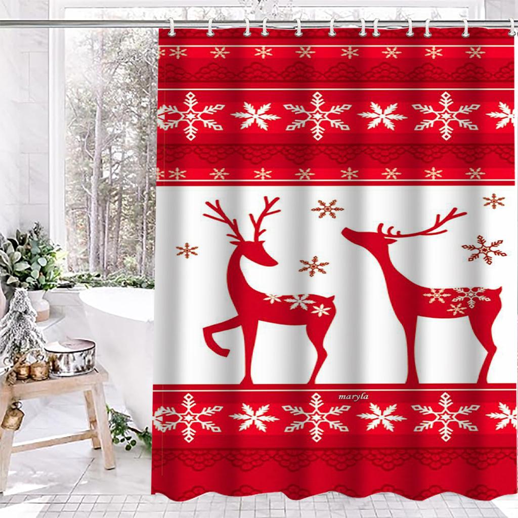 Christmas Reindeer Bathing Curtain Bathroom Shower Curtain Waterproof With 12 Hooks Fishes Home Deco Free Ship