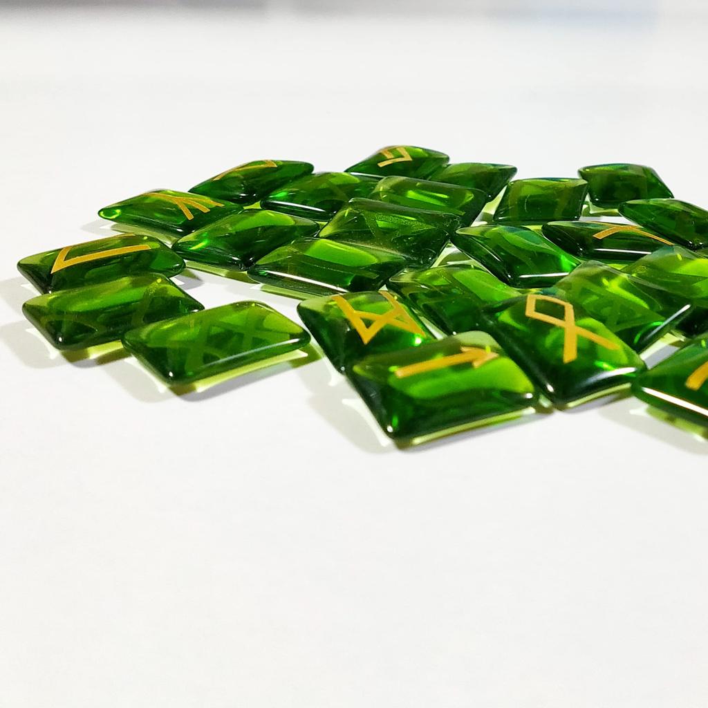 Easy-to-Use Magical Goods: Rune Divination Beginner's Set: 25 Cute, Thin Rune Stones (Green Quartz) for Free Rune Readings [Sedona Magic]