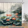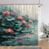 Elegant Lotus Pond Shower Curtain - Traditional Chinese Landscape Design for Modern Bathroom Décor, Waterproof & Easy Care