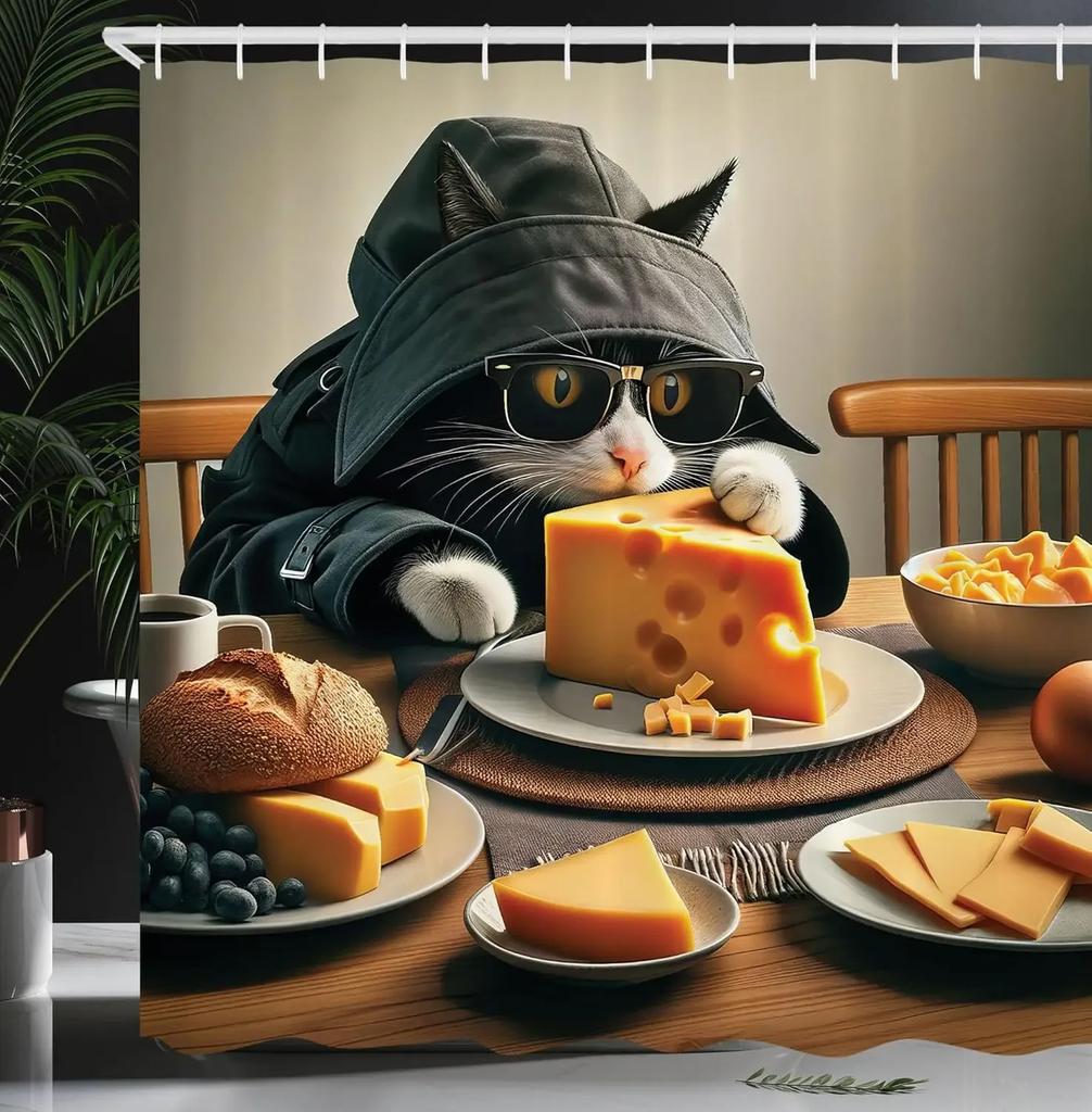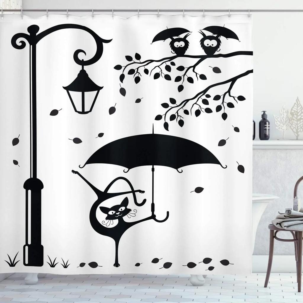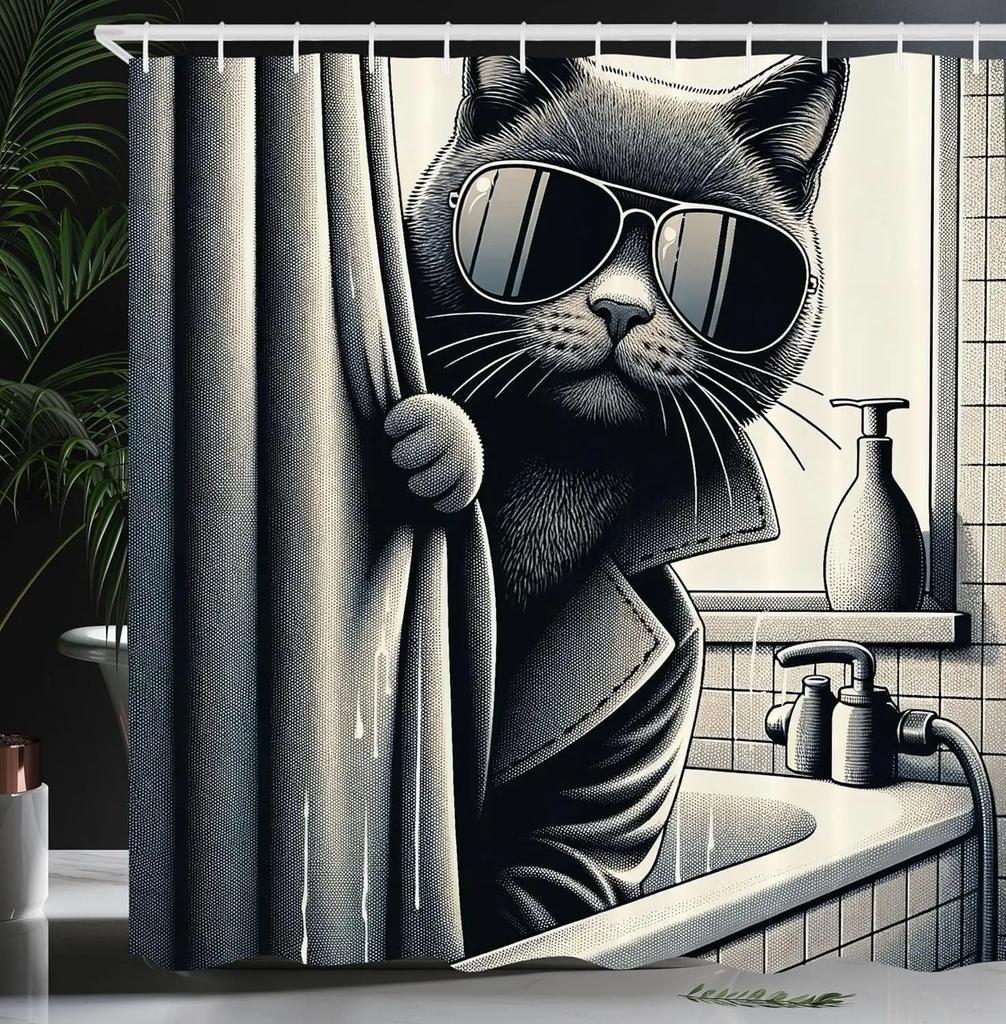 Винтажный эффект забавный причудливый юмор кошка шторка для душа ткань украшение для ванной шторка для душа с крючком, 180x180см