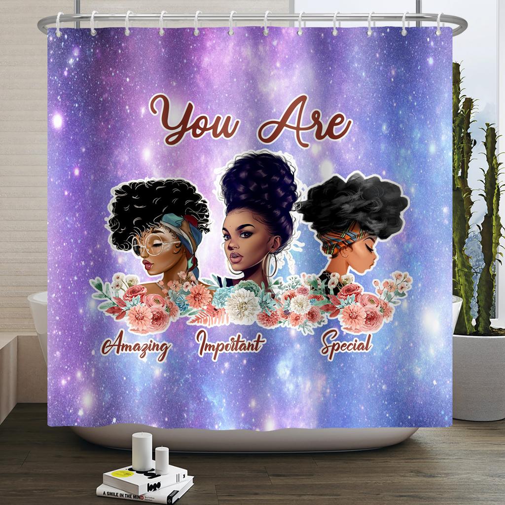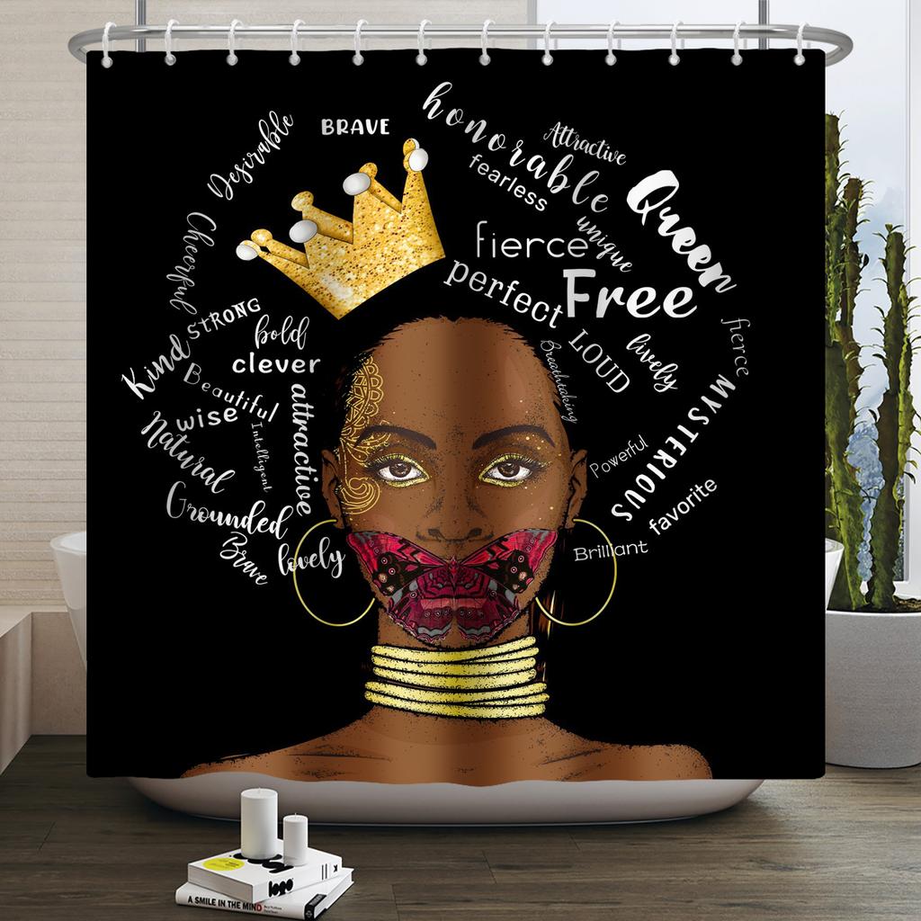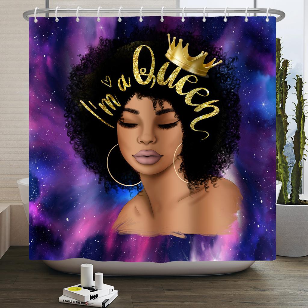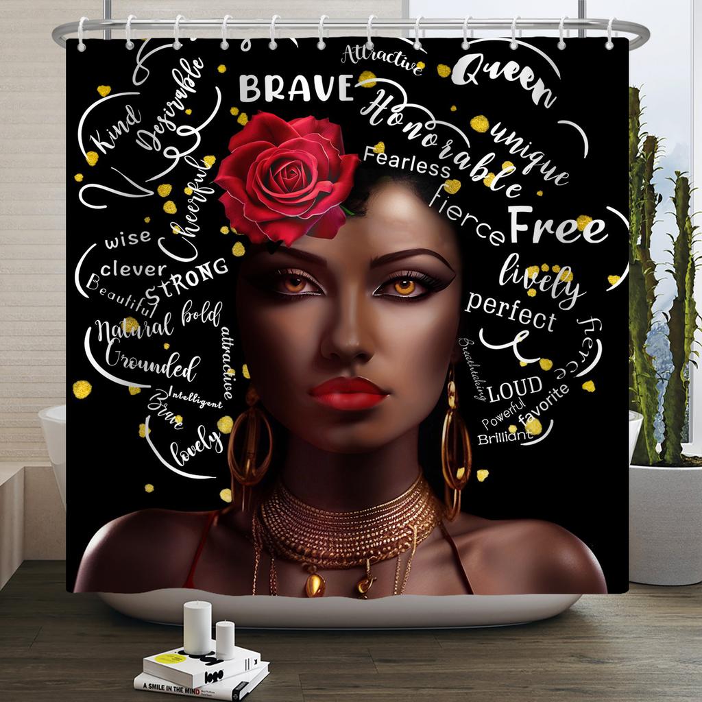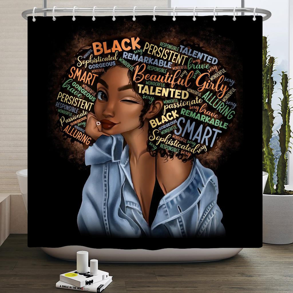 African American Woman Shower Curtain Sexy Black Girl Lady Inspirational Queen Abstract Boho Waterproof Bathroom Shower Curtain