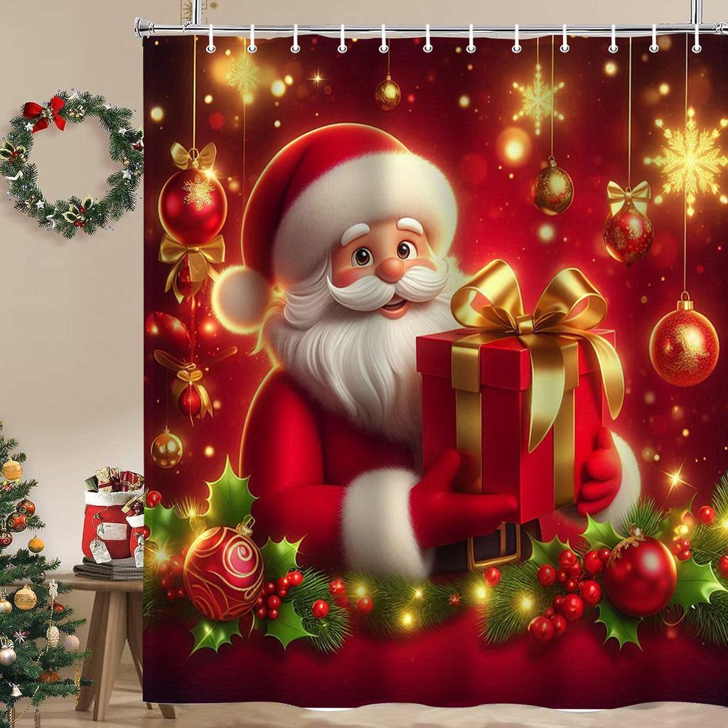 Christmas Festival decorations Santa Claus Pattern Bathroom Shower Curtain With 12 Hooks Home bathroom decor and accessories