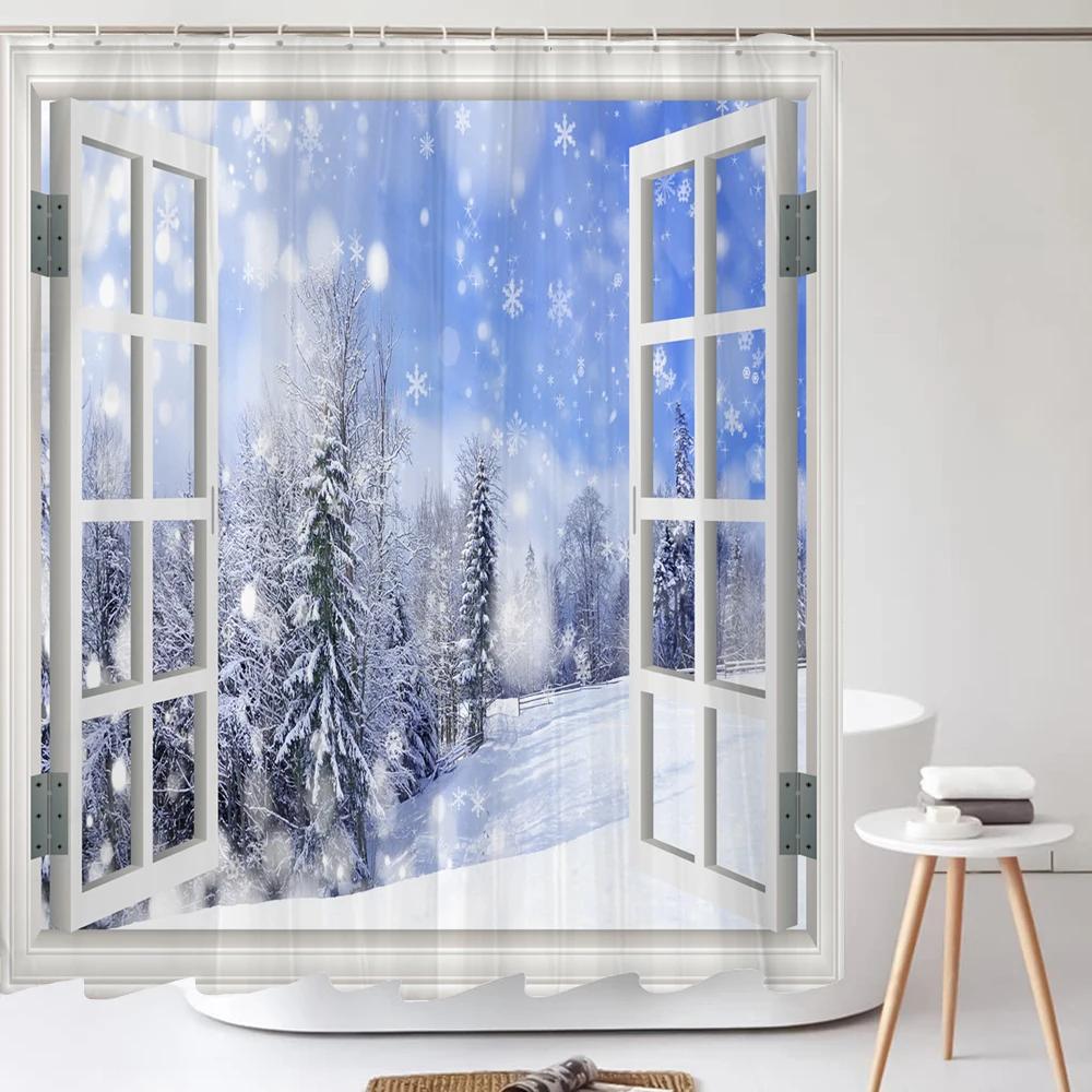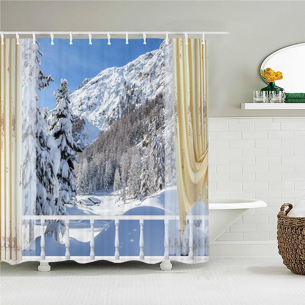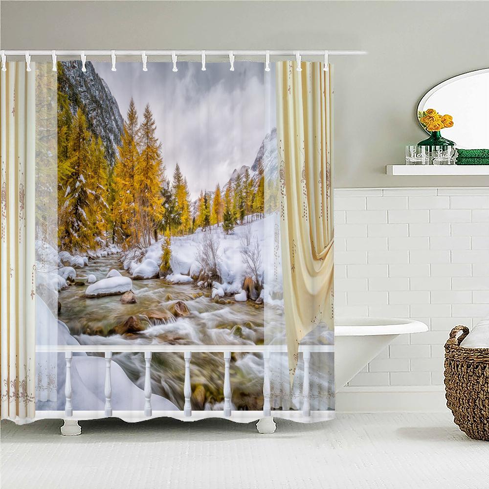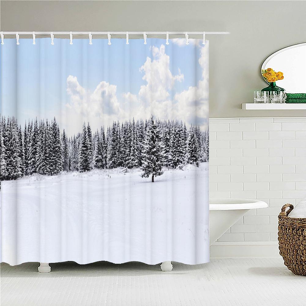 Winter Cedar Trees Natural landscape Shower Curtains Bathroom Curtain Frabic Waterproof Polyester Bathroom Curtains with Hooks