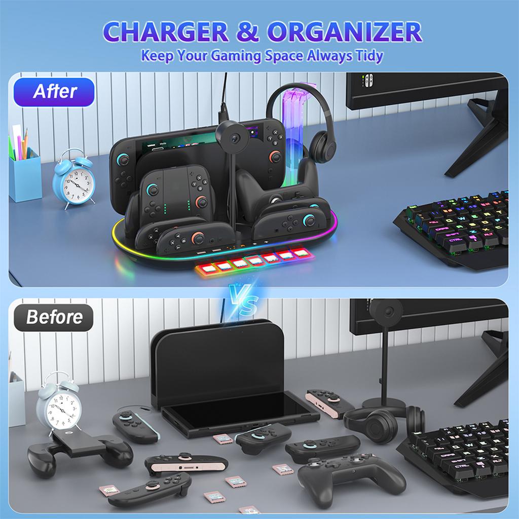 For NS2 Multi-Function Charging Dock Charging & Cooling Joy-Con Charging Base Large Capacity for Cameras Headphones Game Cards