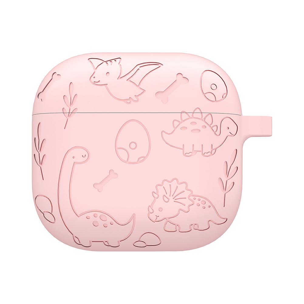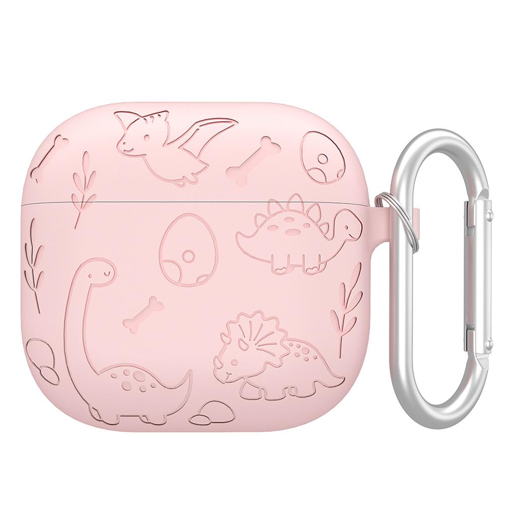 Силиконовый защитный чехол с карабином, с гравировкой в виде цветка и динозавра, полнозащитный чехол для кейса AirPods 4-го поколения (2025)