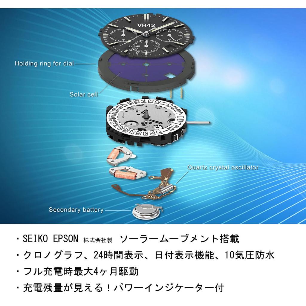 Солнечный кварцевый механизм (до 4 месяцев работы) с функцией хронографа