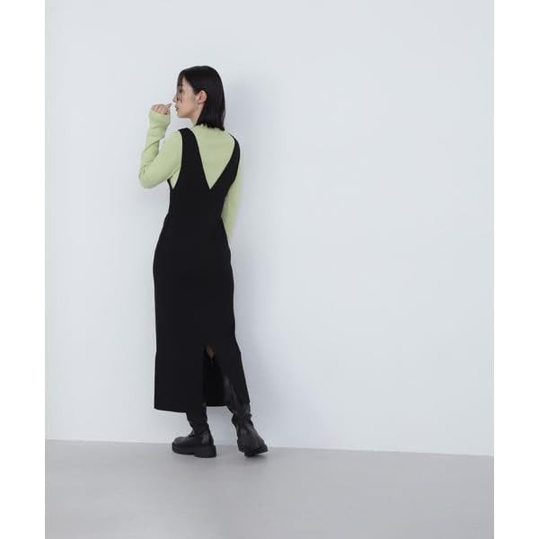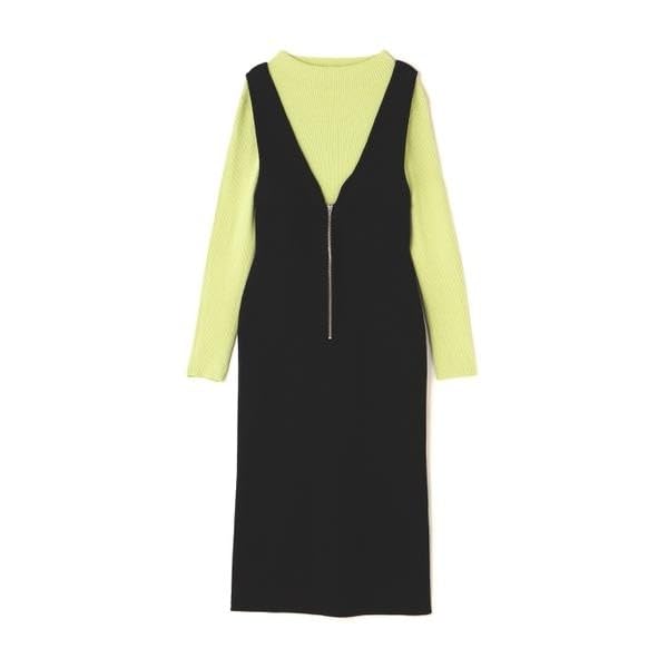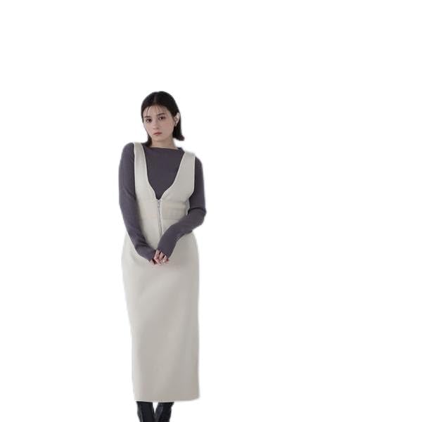 This set includes a basic knit and a full-length knit jumper skirt. The knit jumper skirt features a solid, full-length knit fabric, creating a wintery look with a narrow silhouette that flatters the figure. Subtle cutting from the shoulders to the chest creates a feminine impression. The zipper detail adds a touch of seasonal appeal. The inner knit is easy to wear on its own, but the beautiful color of this set is what makes it so special.