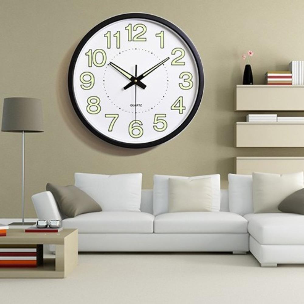 Modern 12inch Glow in The Dark Clock Energy-Saving Non-Ticking Silent Quartz Clock Hanging Plastic Wall Clock Bedroom
