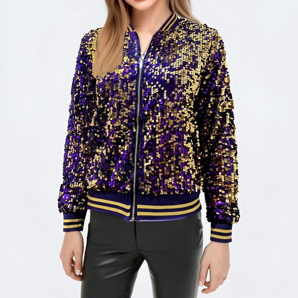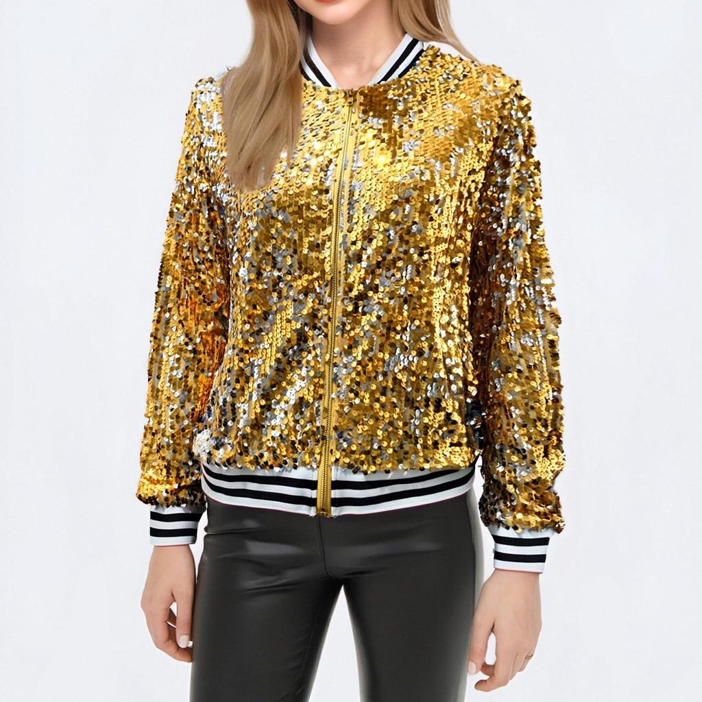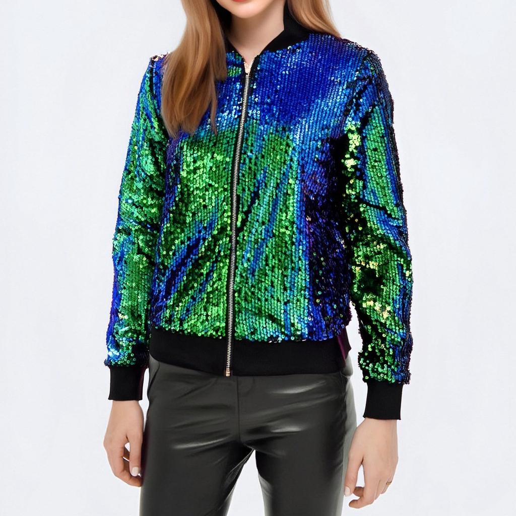 Женская модная куртка с высоким воротником, длинными рукавами, пайетками, концертная, короткая, на молнии