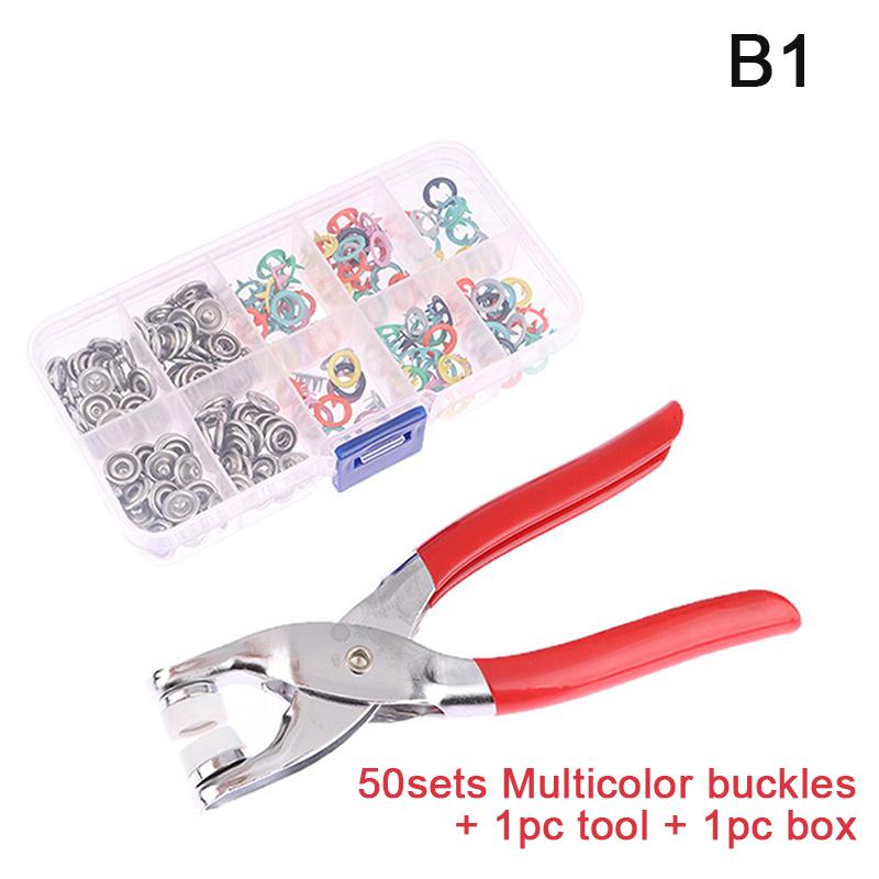Plier Tool 50/100pcs Colour Metal Snap Sewing Button Claw Set Hollow Solid Snap Fasteners Kit for Installing Clothes Bags
