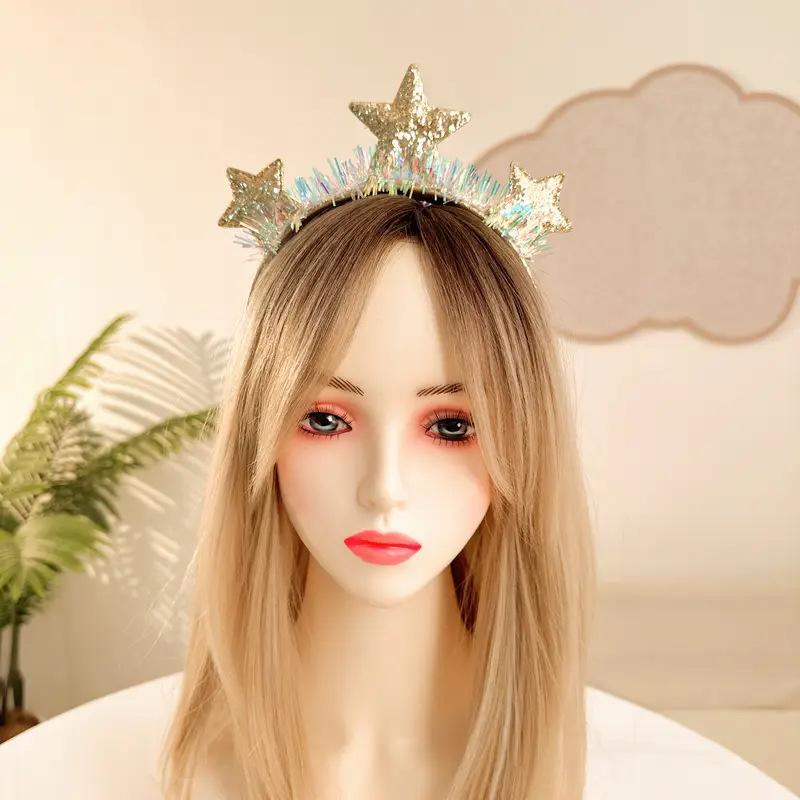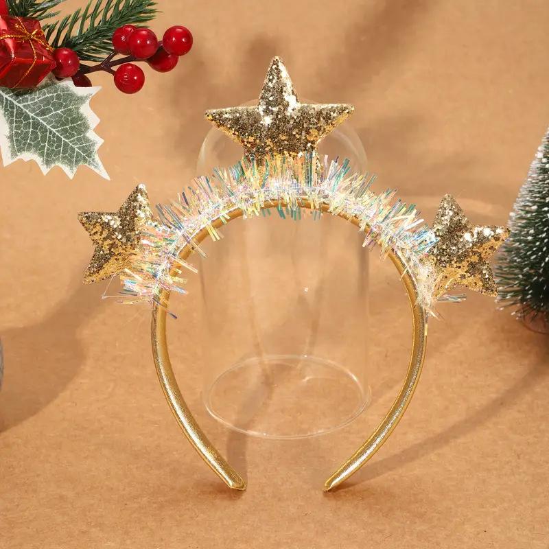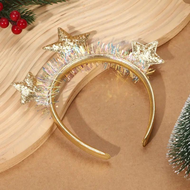 Роскошная Рождественская Повязка на Голову Высококачественная Повязка на Голову с Пятиконечной Звездой с Пайетками Полиэстер Принт Термообработка