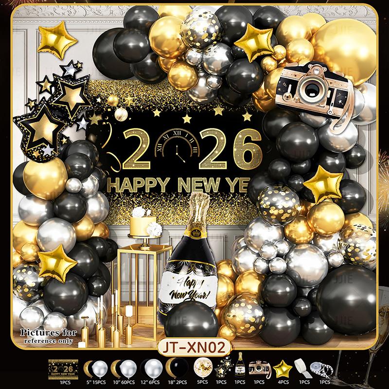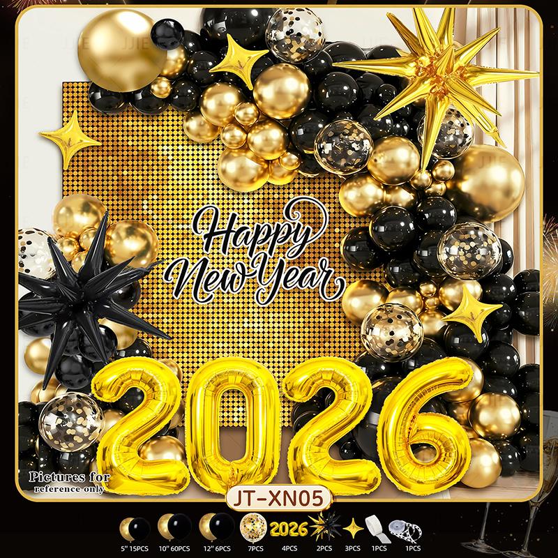 С Новым 2026 годом! Воздушные шары из алюминиевой фольги Золотой набор цифр Баннер Буква Добро пожаловать 2026 Украшения для вечеринки 2026 Украшения