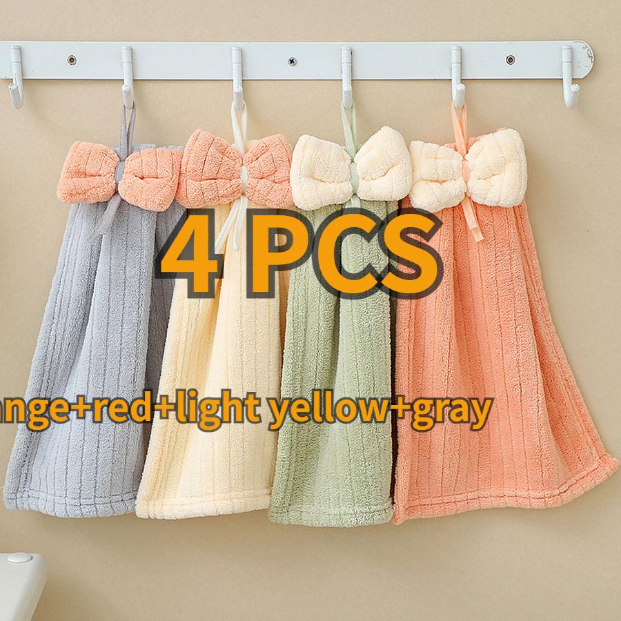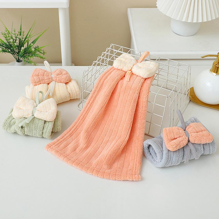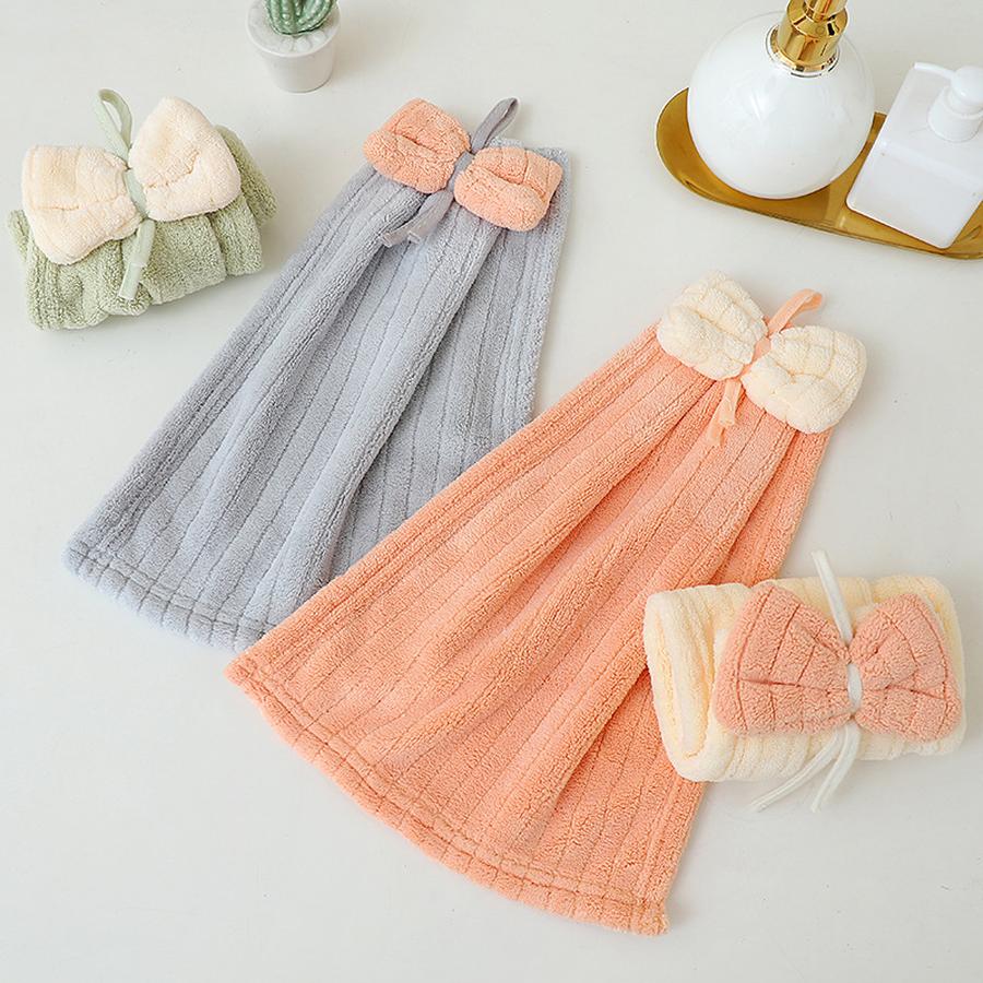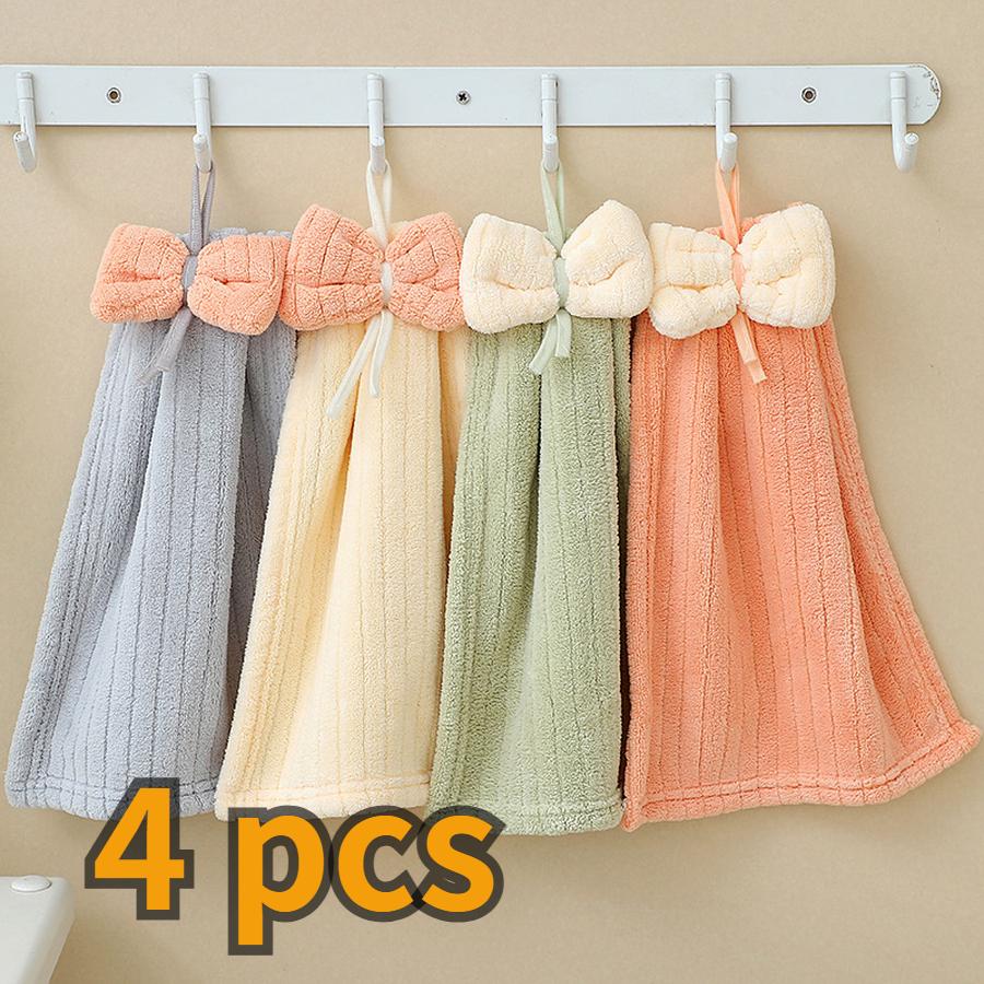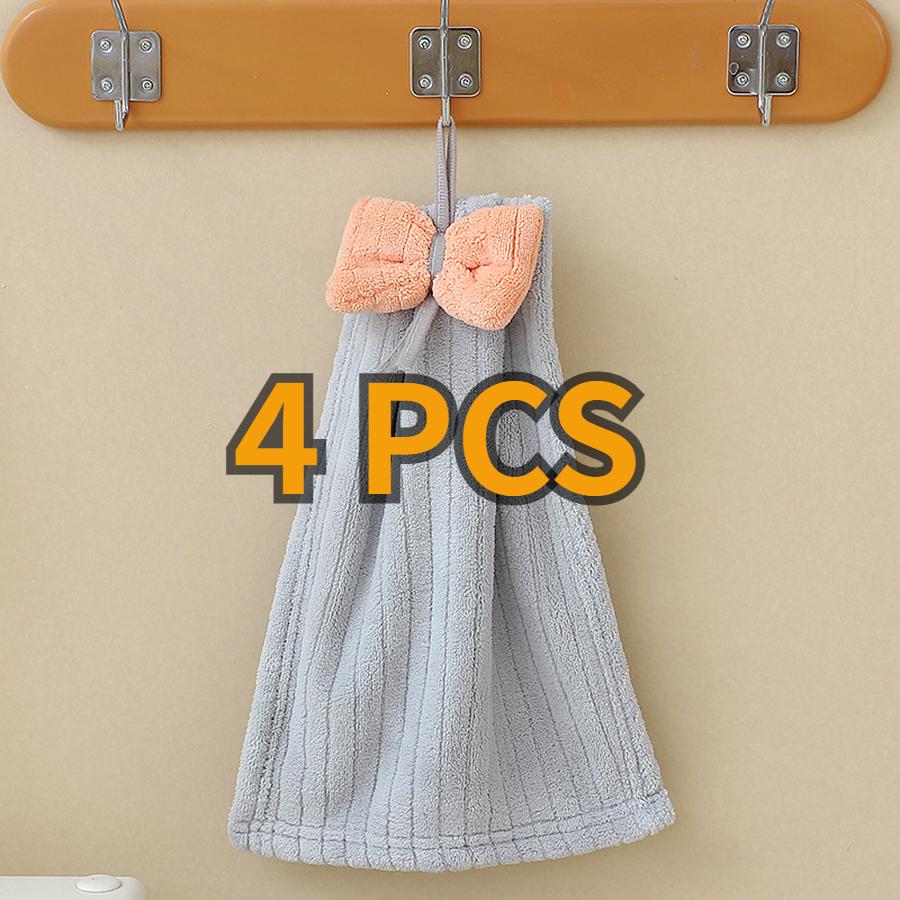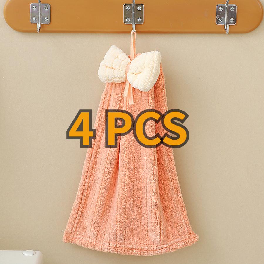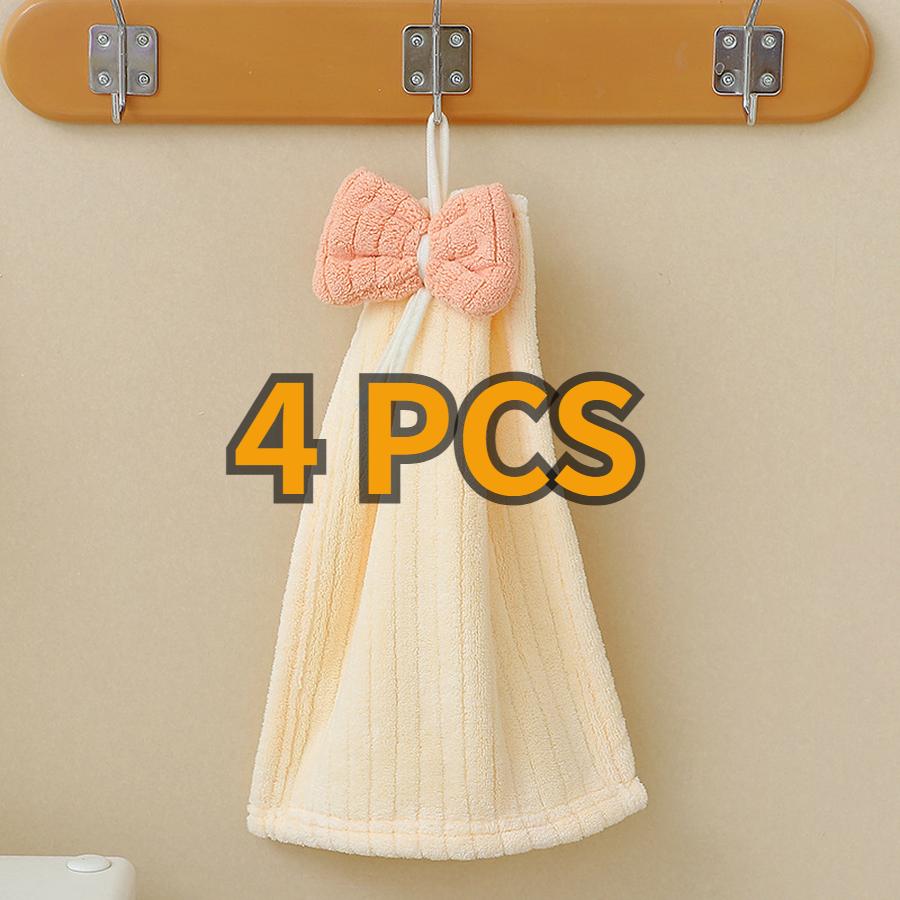 4 шт. Детское полотенце для рук из кораллового флиса, мультяшное, с галстуком-бабочкой, детское, абсорбирующее, быстросохнущее, для лица, подвесное полотенце