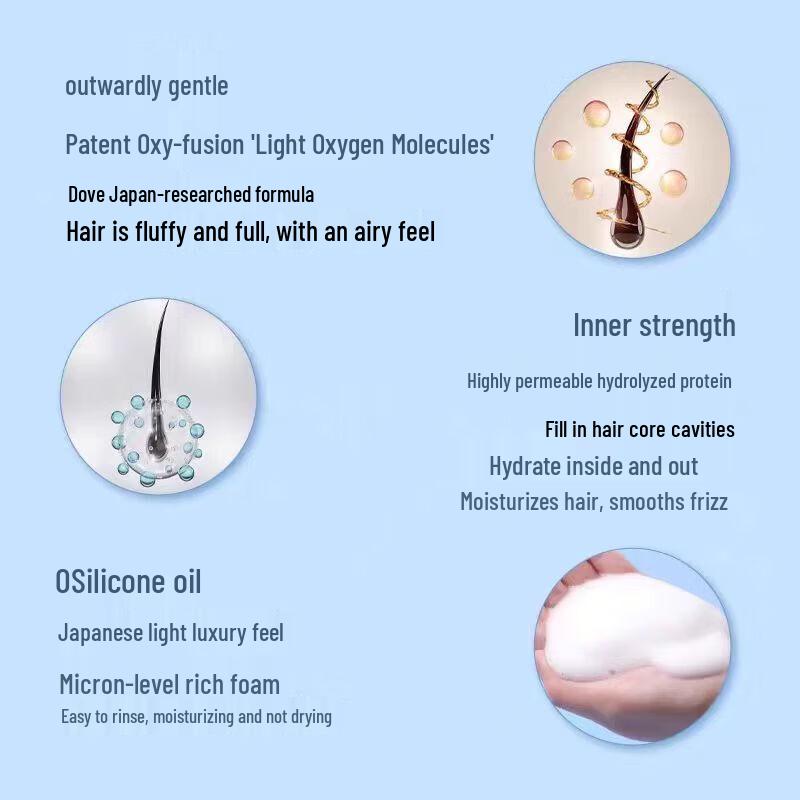 This Dove 0 silicone shampoo is formulated to control oil, smooth hair, and provide a light, fluffy, and voluminous feel. Suitable for both men and women, it's designed for normal hair and various scalp types, offering deep hydration without weighing hair down. Enjoy healthy, manageable hair with enhanced bounce and freshness.