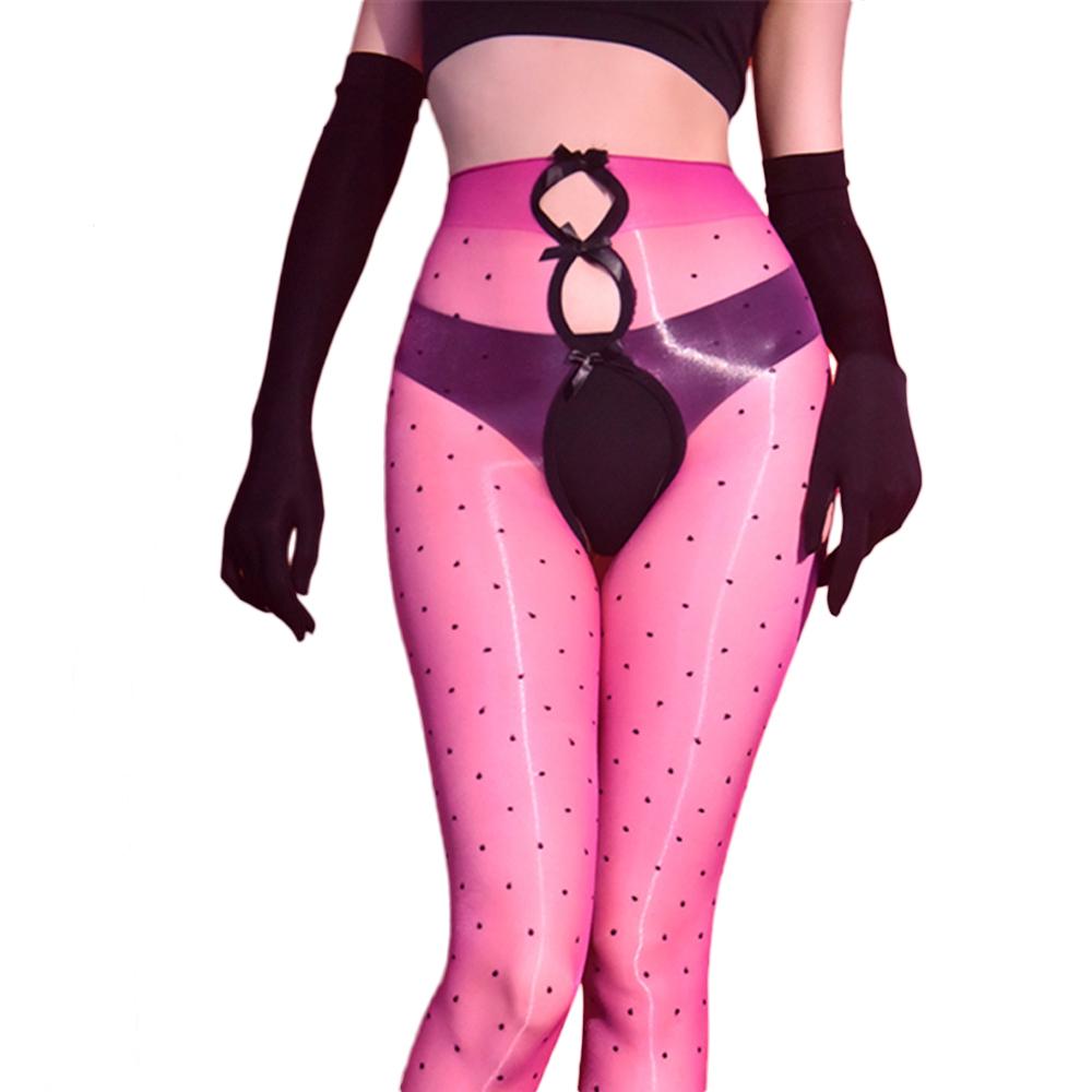 Сексуальные женские 5D тонкие колготки без ластовицы в горошек, прозрачные, глянцевые, блестящие колготки с бантиком, колготки горничной