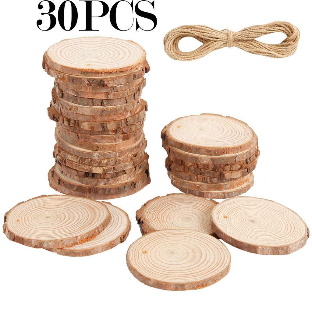 30 шт. Круглые спилы из натурального дерева, деревенские деревянные заготовки, набор деревянных кругов для рукоделия, украшение для DIY