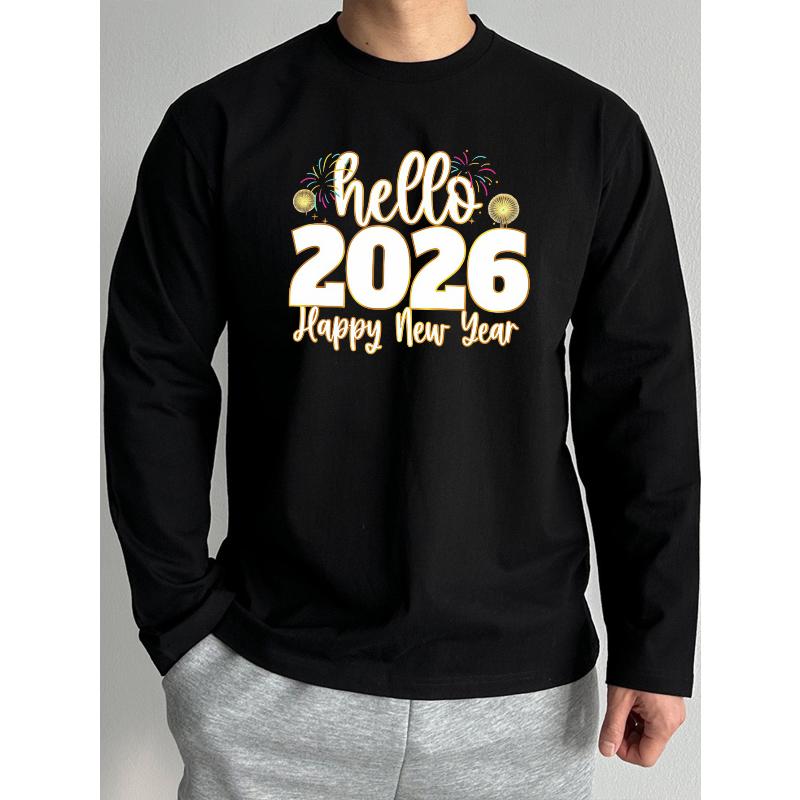 2026 Новогодний Принт Мужская Футболка с Длинным Рукавом Универсальная Домашняя Уличная Повседневная