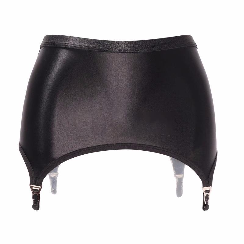 Масло Блестящий Сатин Подвязки Черное Мини Бодикон Платье С 4 Ремнями Металлические Зажимы Для Чулок Pole Dance Готическая Юбка Белье Пояс