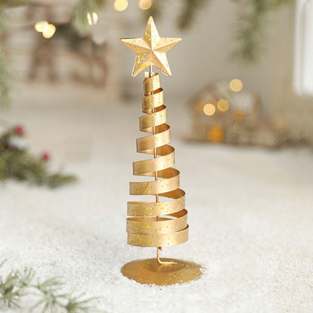 Navidad Gold Mini Christmas Tree Xmas Ornaments Cute Iron Christmas Tree Creative Five-pointed Star Desktop Decoration New Year