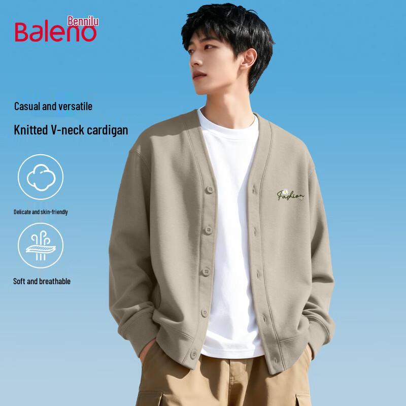 Baleno Men's V-Neck Button Cardigan Sweatshirt
