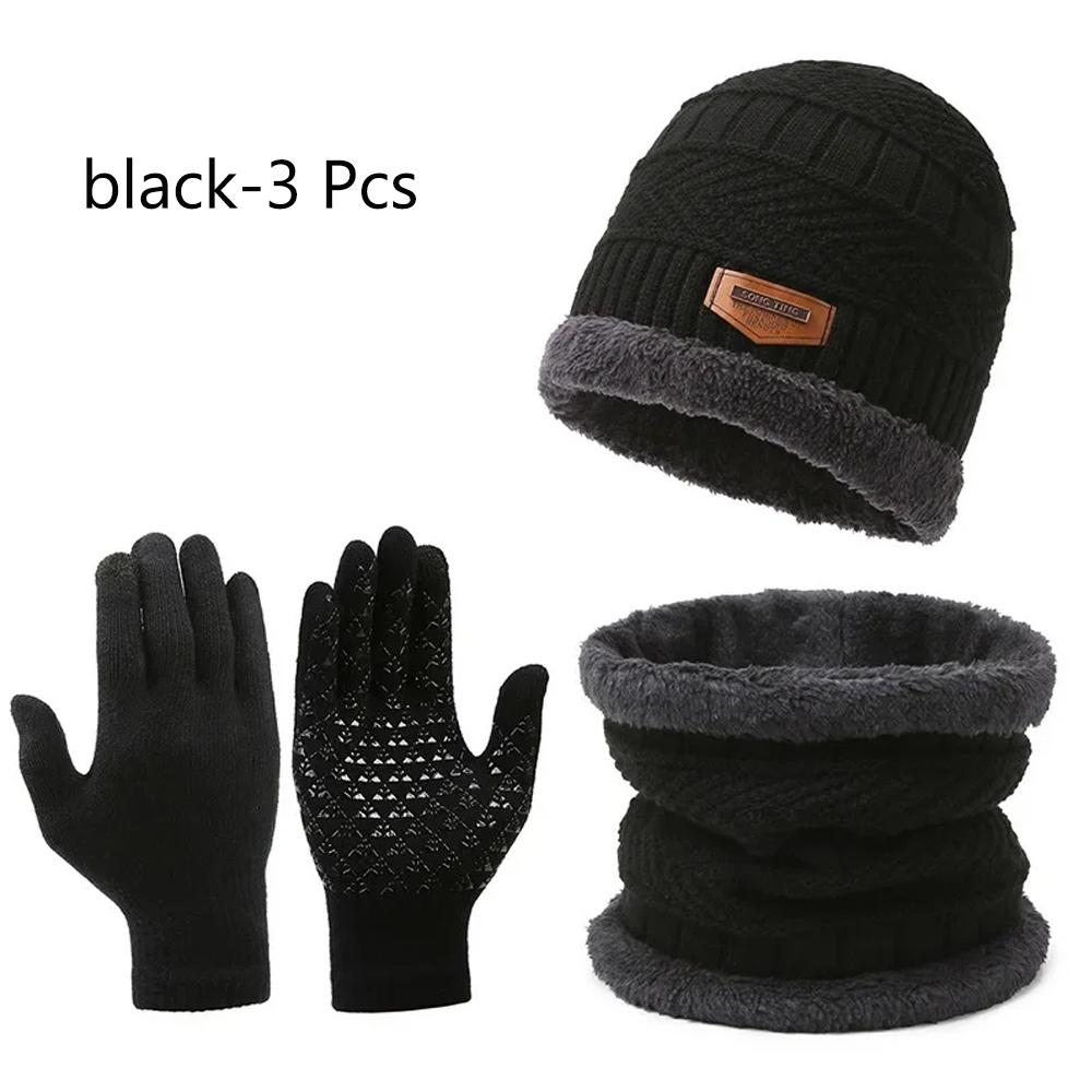 Набор из 3 предметов: зимняя флисовая утолщенная ветрозащитная шапка, перчатки, шарф. Плюшевые теплые шерстяные вязаные шапки-бини для мужчин и женщин