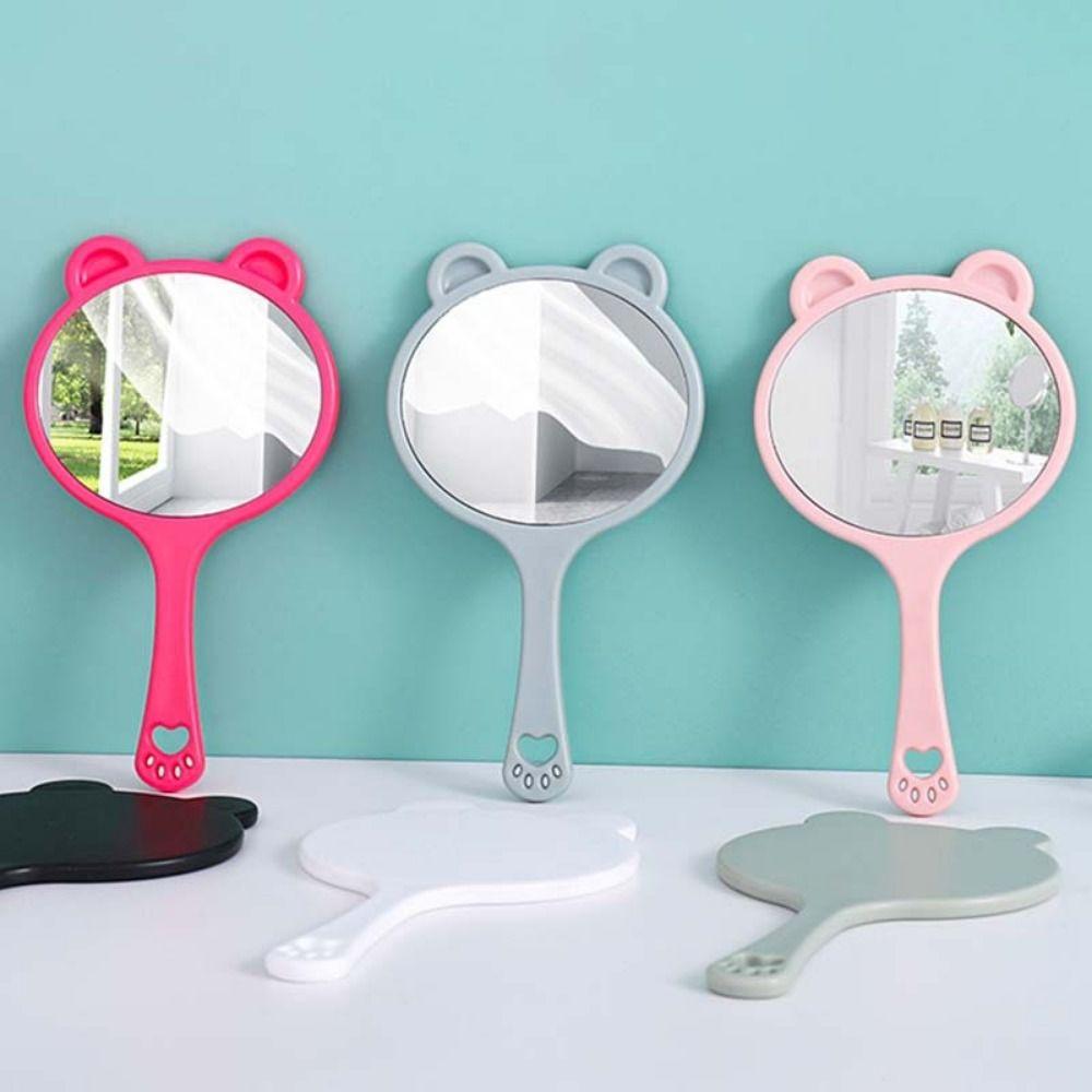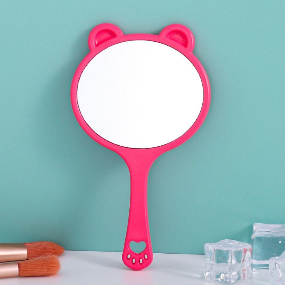 Мультяшное зеркало в виде медвежьей лапы Уникальное косметическое зеркало Портативное ручное зеркало в виде медвежьей головы Девушка