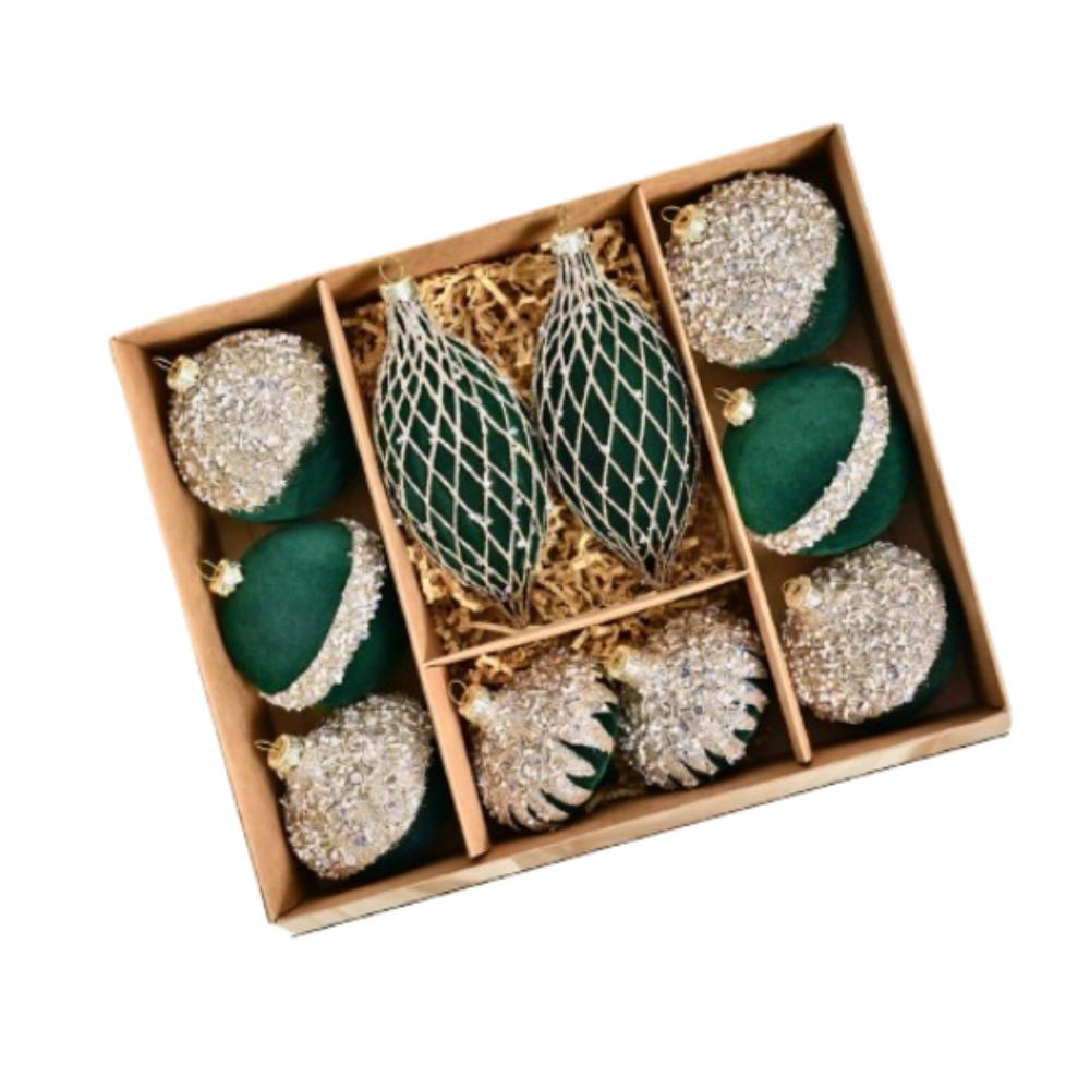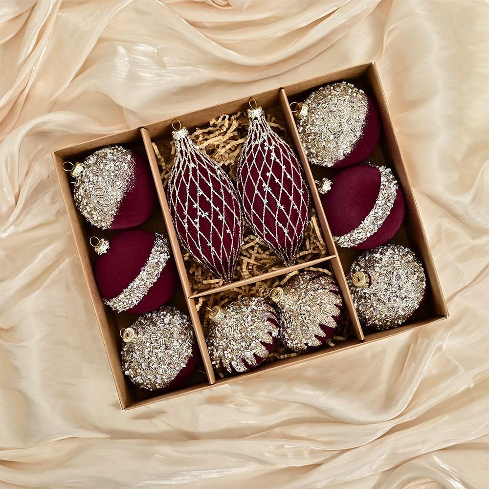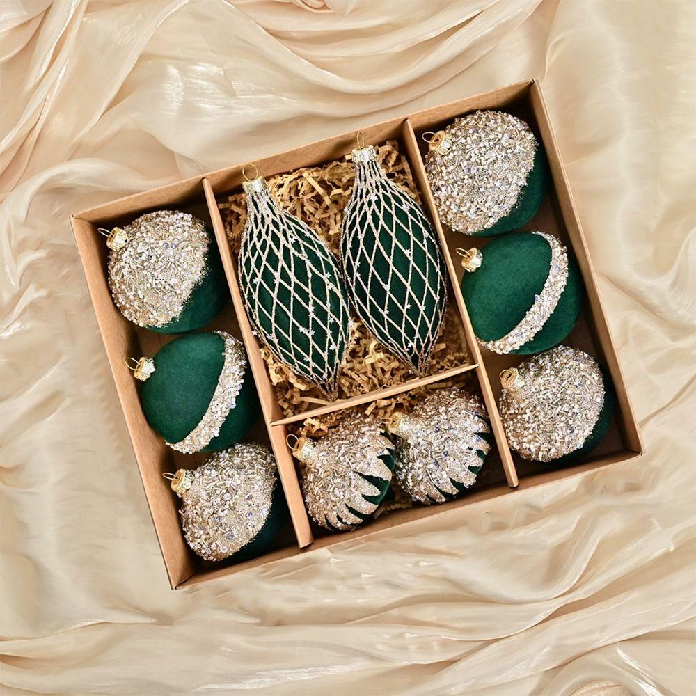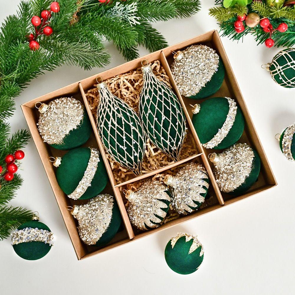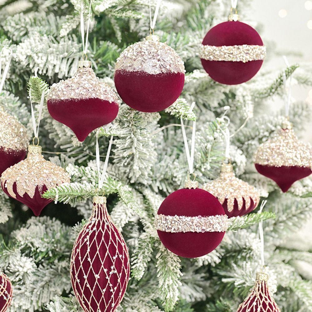 10 шт. Флокированные рождественские подвесные шары с блестками, украшения для рождественской елки, праздничный декор