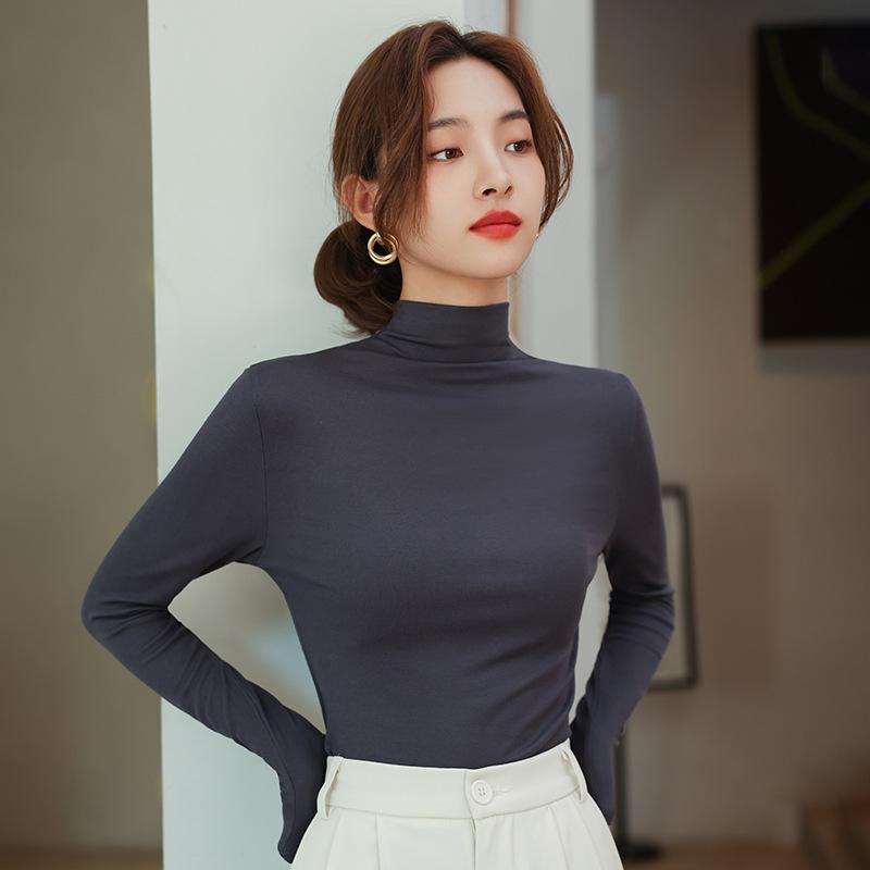 H898 женская модальная футболка с полуворотником-стойкой, новинка осени, в зарубежном стиле, облегающая, универсальная футболка