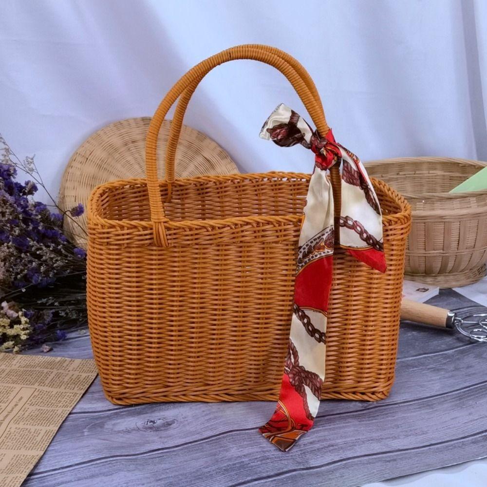 With Handle Picnic Basket Rattan Flower Basket Decorative Woven Basket Fruit — купить товар онлайн с бесплатной доставкой до всему миру!
