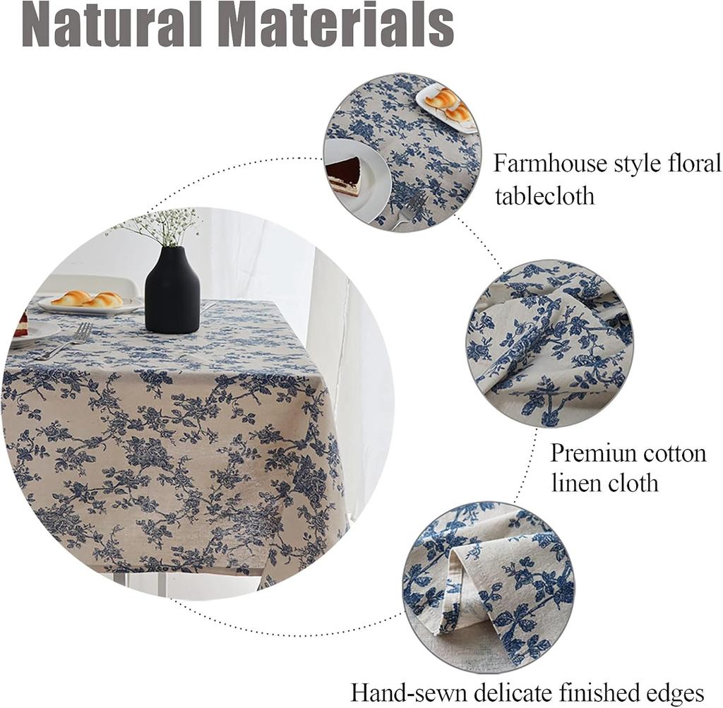 Синяя Цветочная Пасторальная Скатерть, Винтажная Хлопково-Льняная Прямоугольная Накладка на Стол Для Ужина, Пикника, Кофе, Вечеринки, Стол для Дома