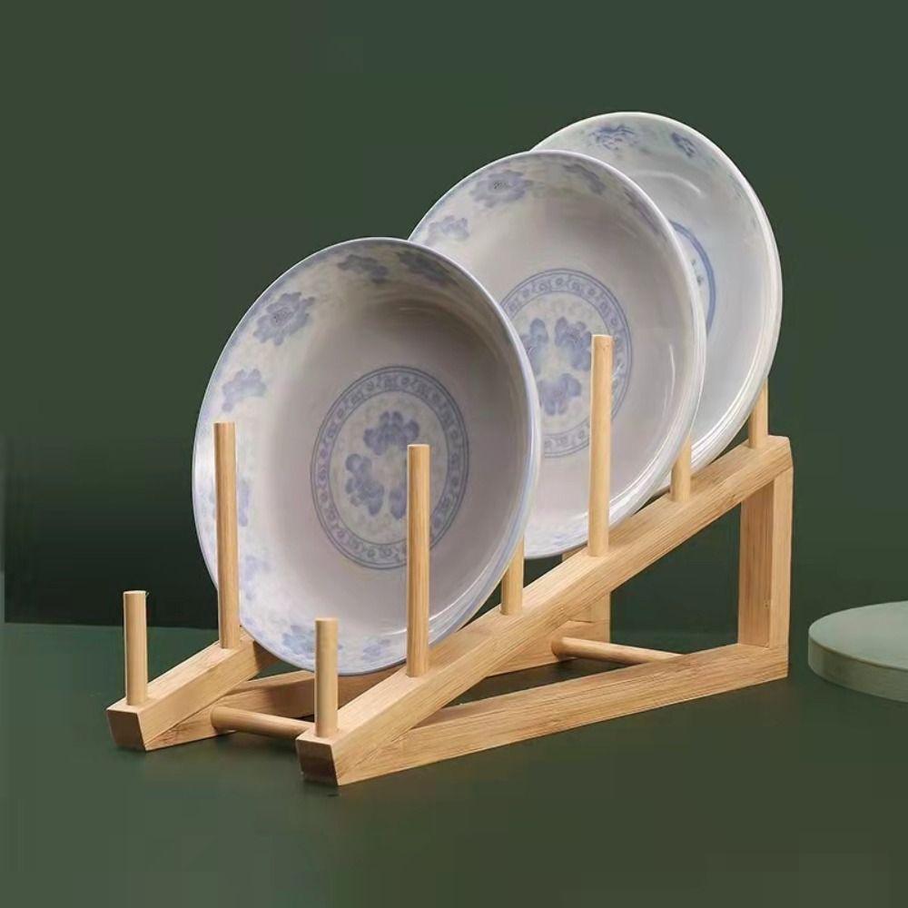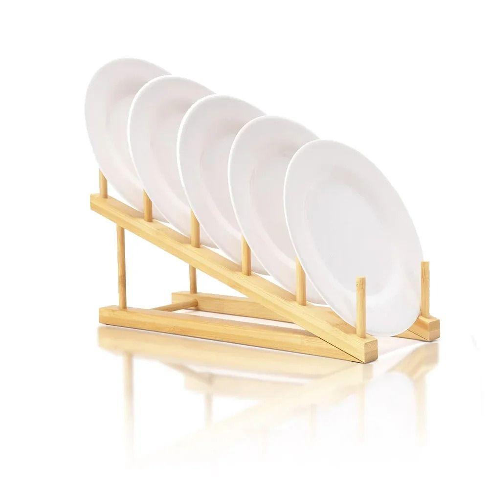 Сушилка для посуды из бамбука 5 ярусов Подставка для сушки посуды Органайзер для художественных принадлежностей Держатель для крышек кастрюль Школа/Офис