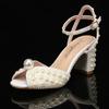Модные милые туфли-лодочки на шпильке с жемчугом ручной работы, с неглубоким вырезом, для вечеринки, свадьбы, на толстом каблуке, на высоком каблуке для женщин