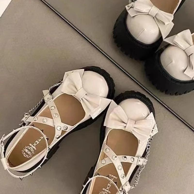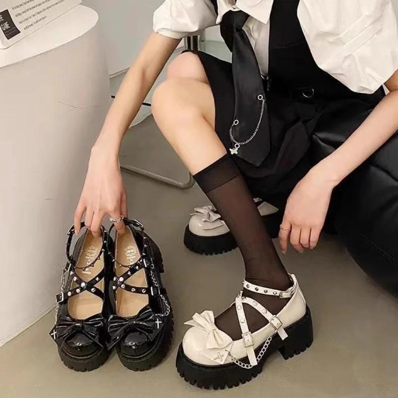 Fashion 2025 New Women's Shoes Ankle Straps Womens Pumps Platform Women Leather Bows Mary Jane Punk Gothic Chunky Heel Chaussures Femme