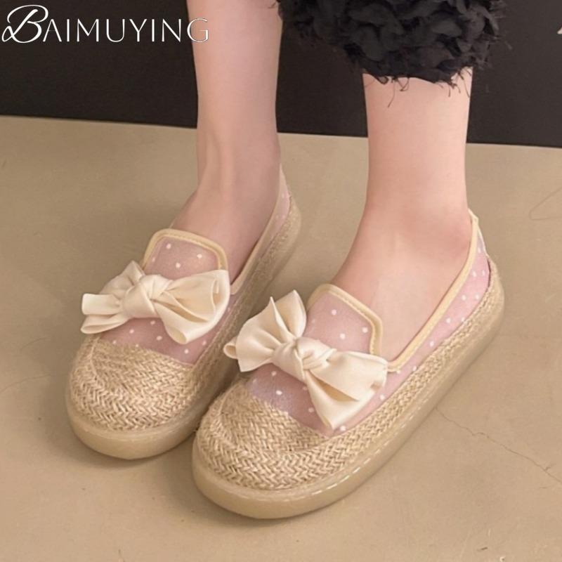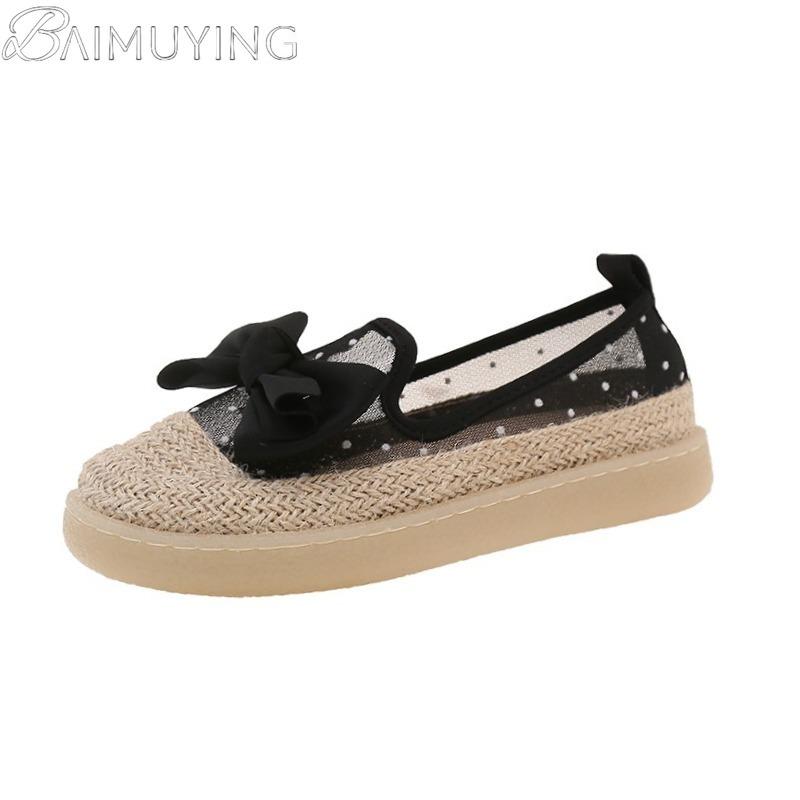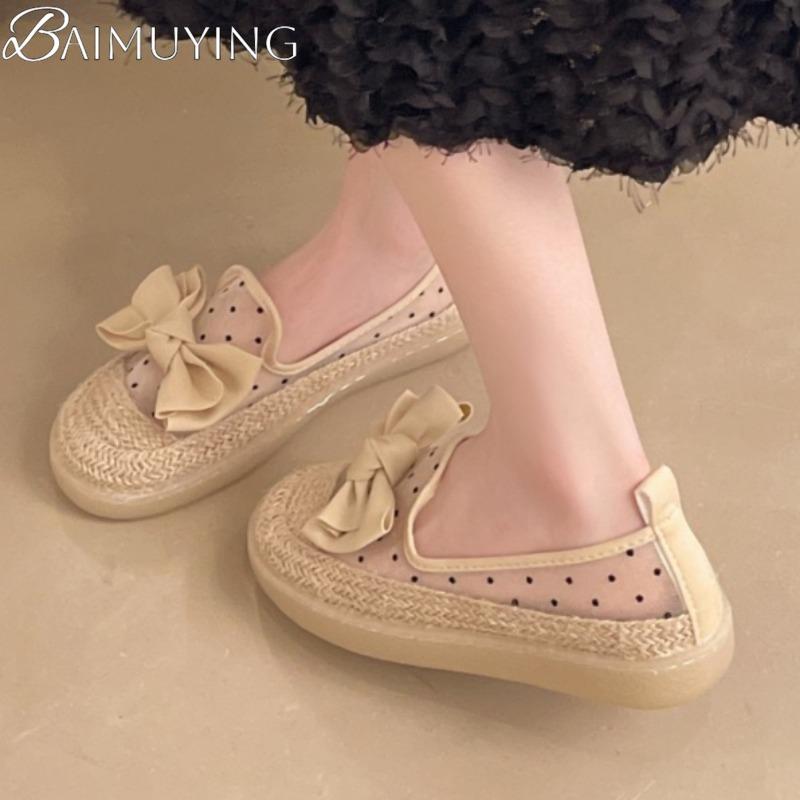 Модные лоферы с бантом, туфли, женские плетеные сетчатые повседневные сандалии на мягкой подошве, тренд 2025, летние пляжные, неглубокие, удобные сандалии для женщин