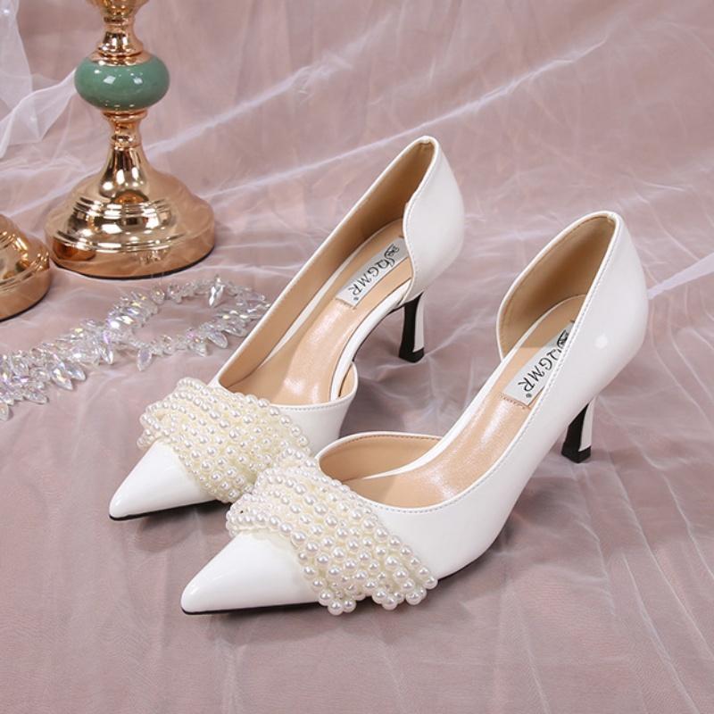 Модная жемчужная овчина, остроносые низкие туфли-лодочки, монохромная лакированная кожа, свадебные туфли на высоком каблуке-шпильке, модная обувь для подружки невесты
