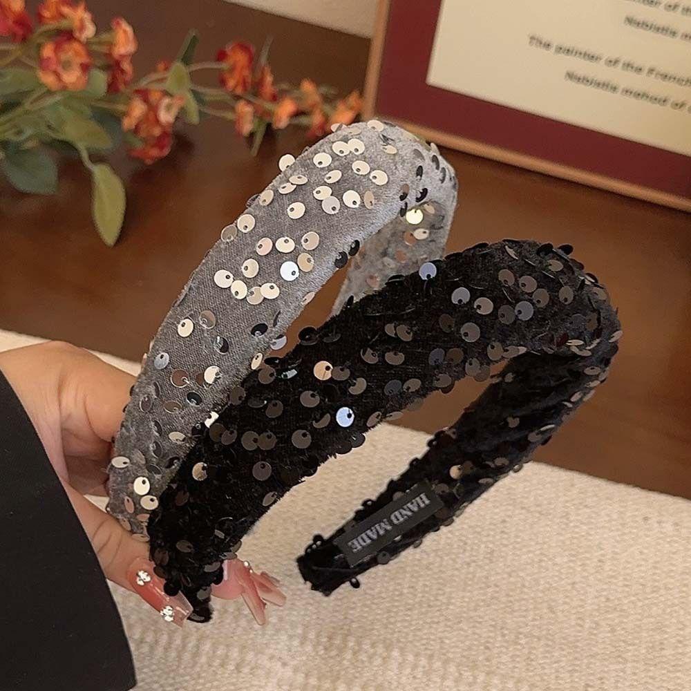 Бархатная повязка на голову с пайетками, однотонная губчатая повязка для волос, модная широкая повязка для волос, для девочки
