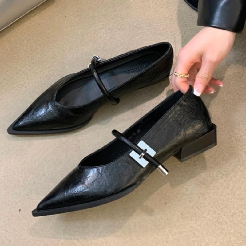 Модные женские туфли Мэри Джейн с острым носком, осень, новые, с неглубокой металлической пряжкой, однорядная пряжка, удобные одинарные туфли — купить товар онлайн с бесплатной доставкой по всему миру!