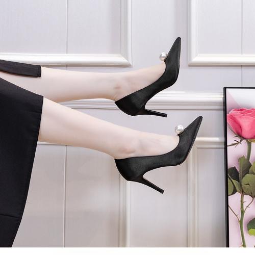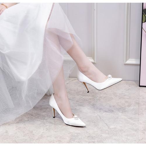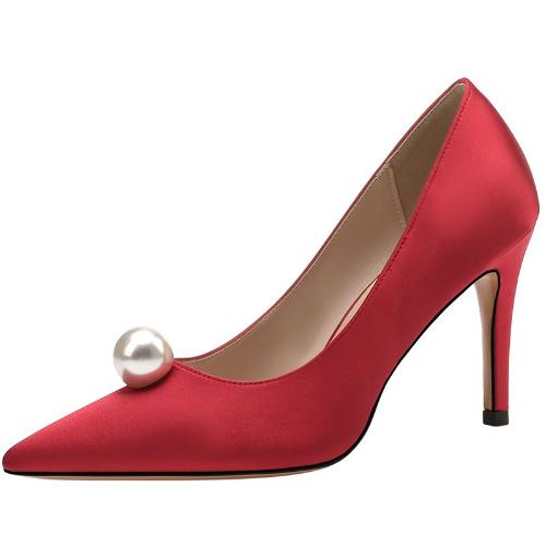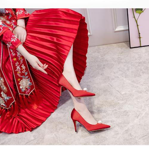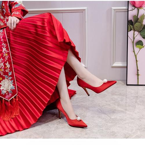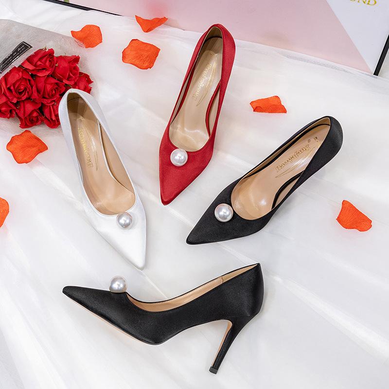 Мода 2025 Новые свадебные туфли Женские Жемчужная пряжка Красные Высокие каблуки Шпилька Подружка невесты Белые Свадебные туфли Черные Рабочие туфли