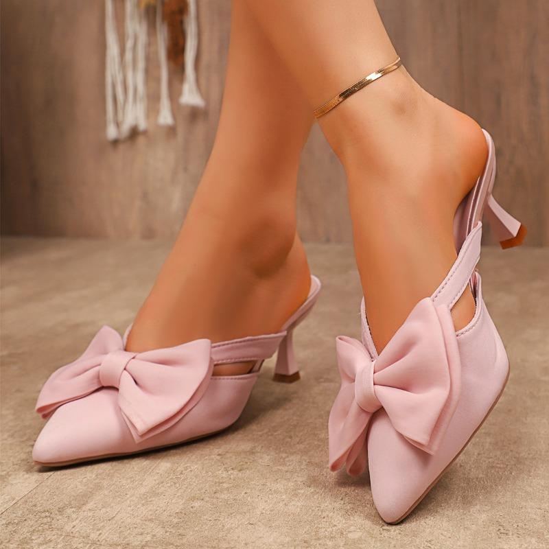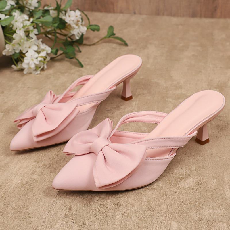 Модные туфли-лодочки на тонком каблуке с закрытым носком, крутые шлепанцы, женская мода, острый носок, неглубокий вырез, бант, вырез, нескользящие, износостойкие, на высоком каблуке