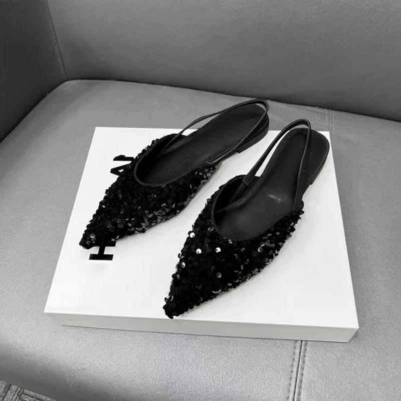 Мода 2025 Новые Летние Женские Сандалии с Закрытым Носком Модные Туфли-Слипоны с Пайетками Женские Элегантные Вечерние Платья Балетки Сандалии