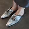 Модные женские туфли-мюли, блестящие балетки, шлепанцы с квадратным носком, элегантные новинки 2025, летние сандалии, вечерние туфли для платья, роскошные женские туфли-слингбэки Mujer