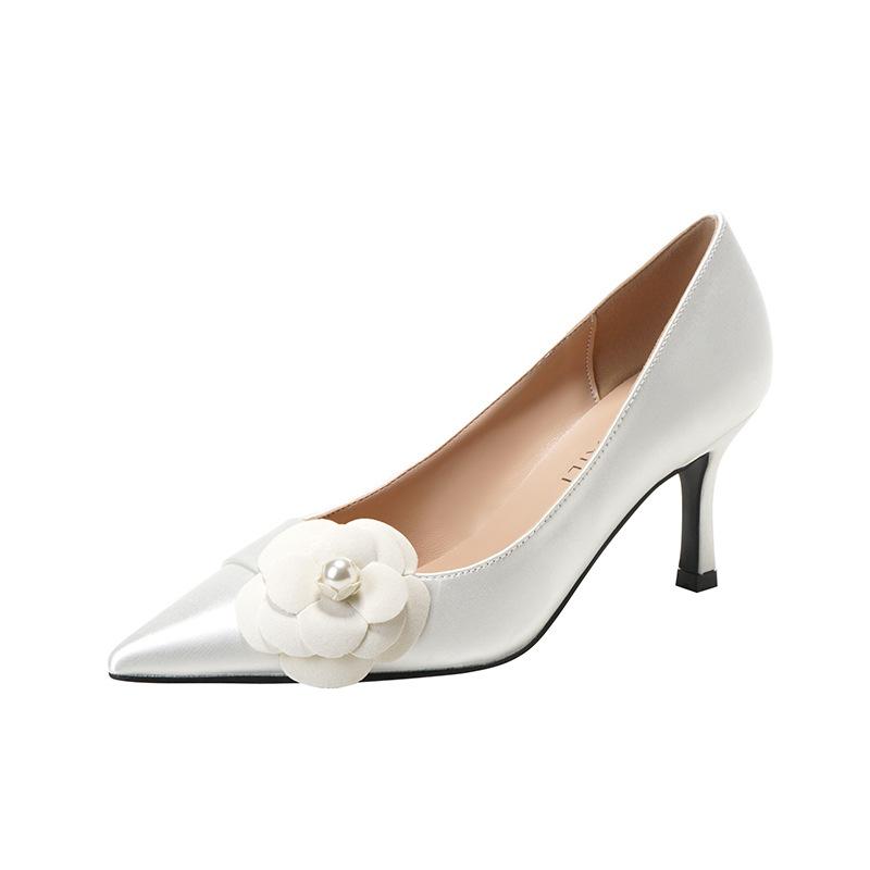 Модные женские французские свадебные туфли Элегантные туфли на высоком каблуке с камелиями для вечеринки к свадебному платью Красные свадебные туфли