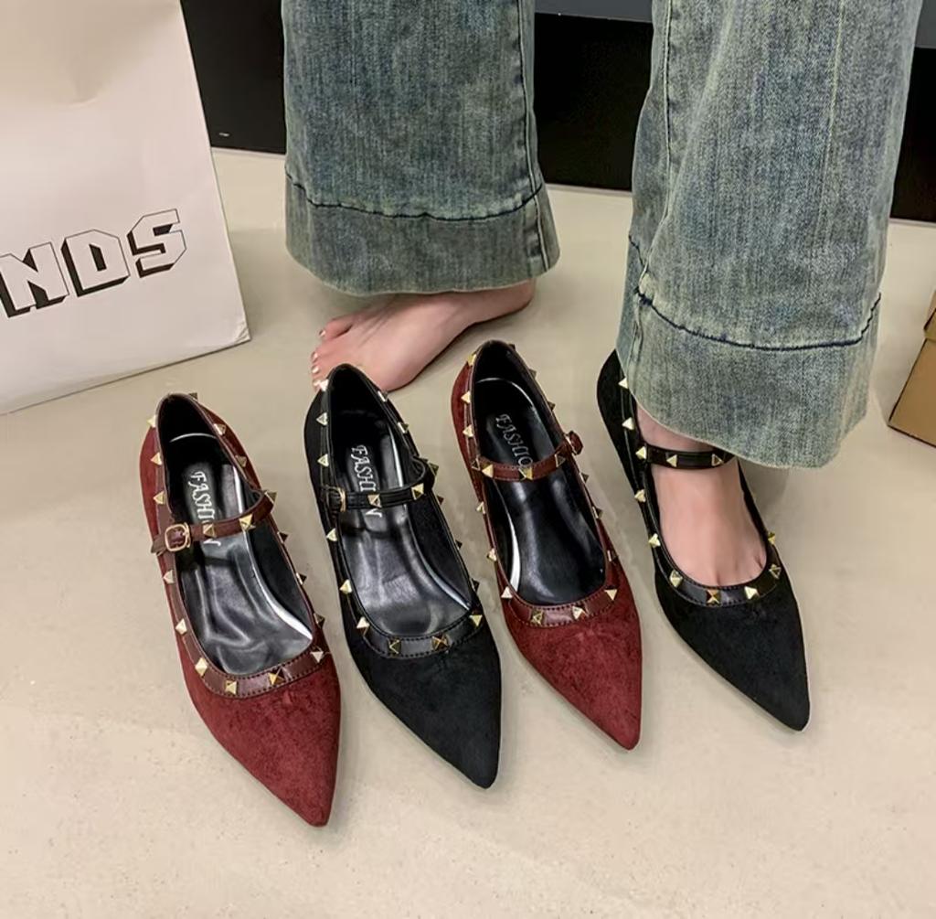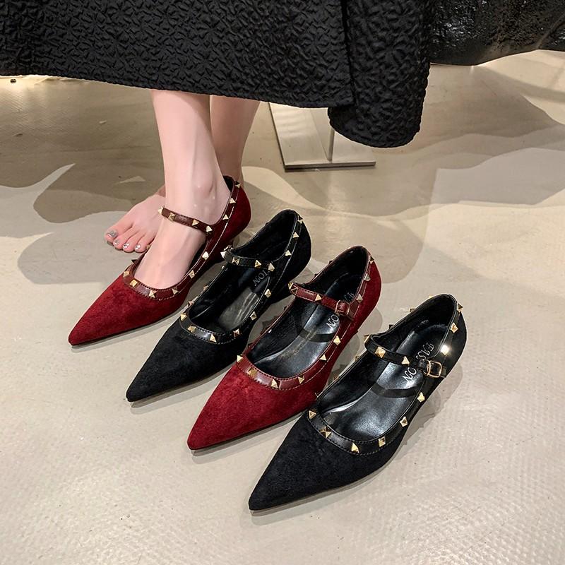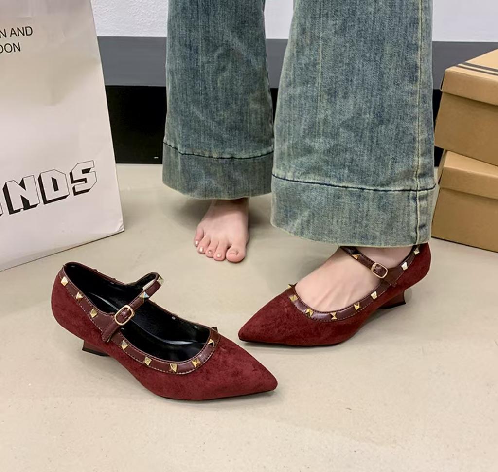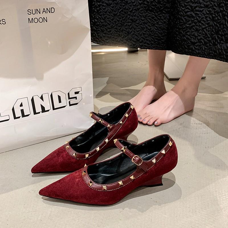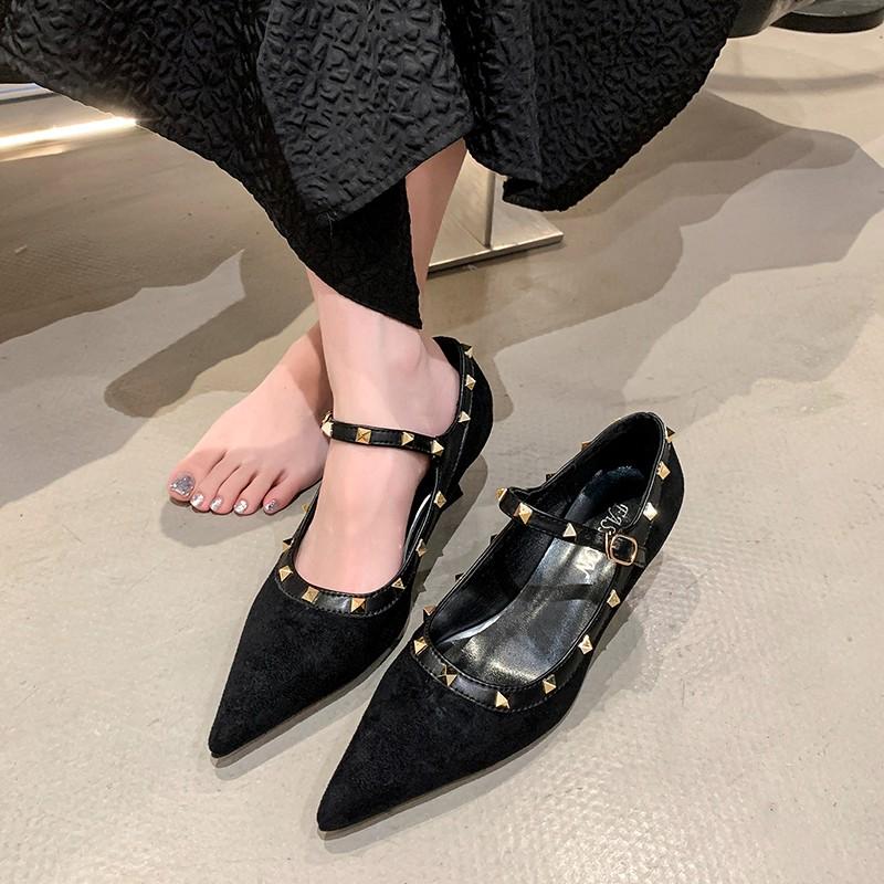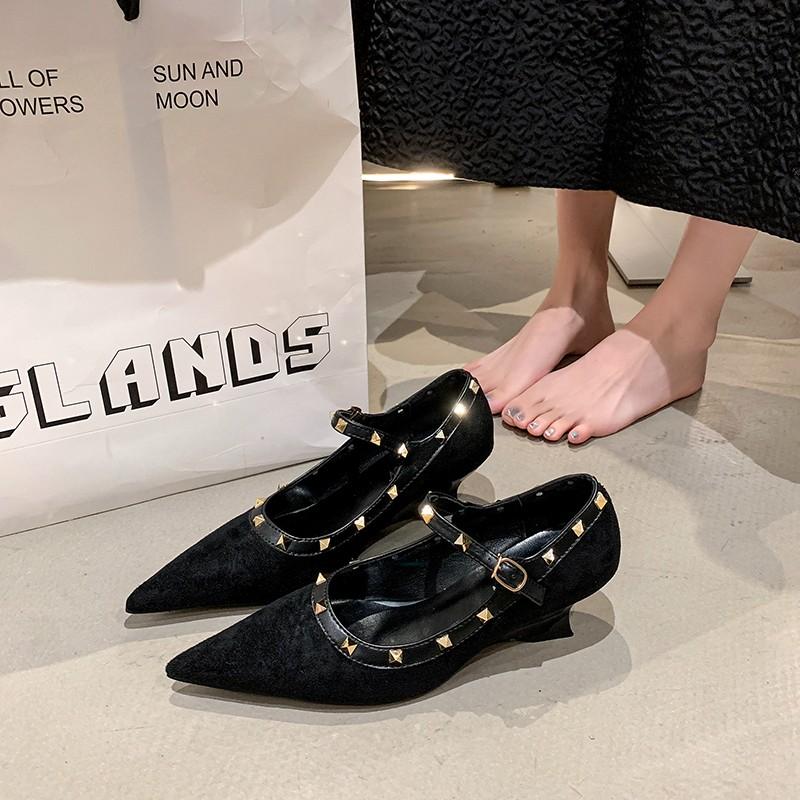 Модные корейские туфли клоги на платформе с острым носком с мелким вырезом увеличивающие рост заклепки шипы женская обувь 2025 криперы новые летние
