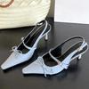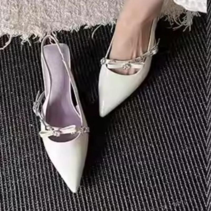 Fashion Fashion Pointed Toe Stiletto Sandals Women's Wrapped Toe Shallow Mouth Metal Buckle Bow Slip Strap Non-Slip Kitten Heel Shoes