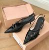 Мода 2025 Новые лакированные сандалии-кошечки с ремешком на щиколотке, женские черные шелковые туфли-лодочки на шпильке с острым носком