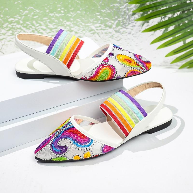 Мода Новые Ретро Национальный Стиль Вышивка Вышитые Сандалии Лето Острый Носок Мелкий Вырез Мягкая Подошва Нескользящие Балетки